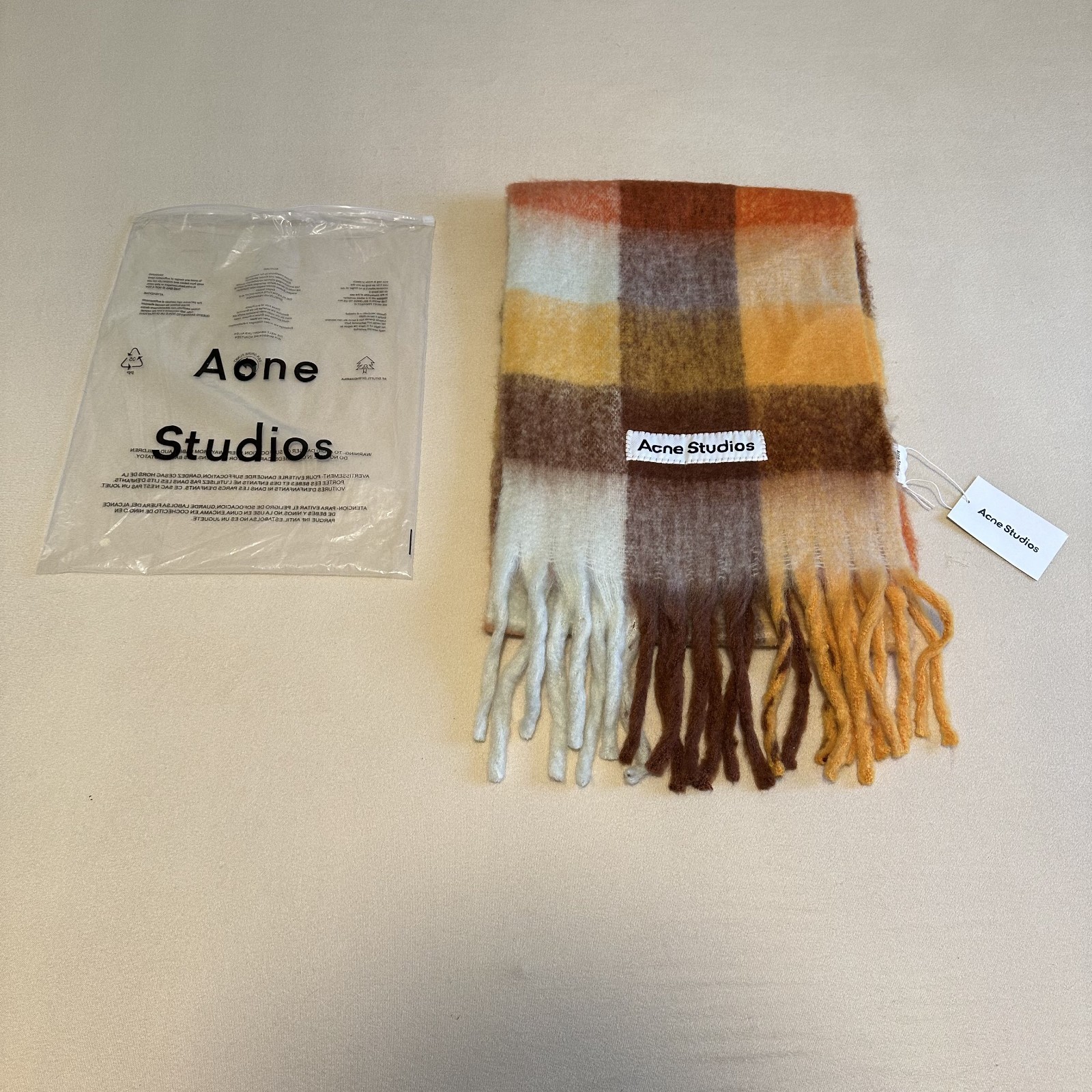 Acne Studios Vally Check Scarf Orange Brown Yellow Wool Alpaca NWT Italy