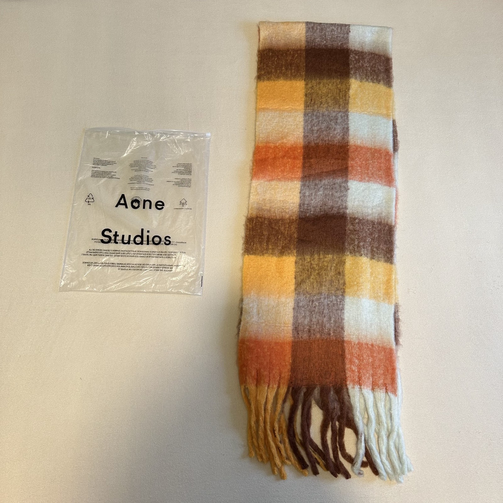 как выглядит Acne Studios Vally Check Scarf Orange Brown Yellow Wool Alpaca NWT Italy фото