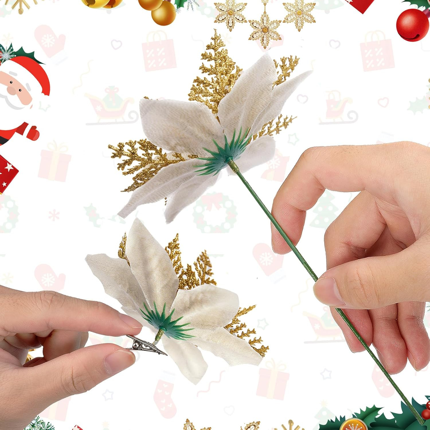 Glitter Poinsettia for Christmas Tree, 12 Pcs Artificial Christmas Flowers with