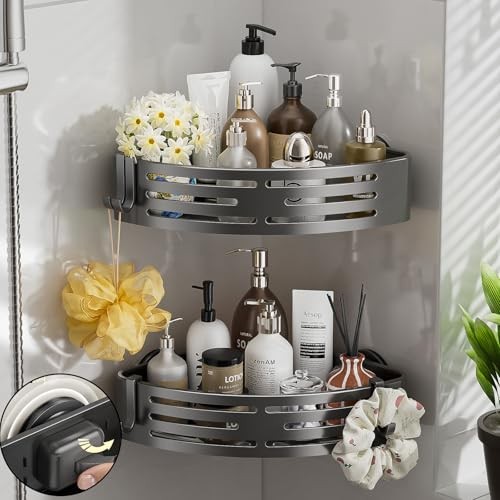 Corner Shower Caddy Suction Cup,Shower Shelves with Hooks,No Drilling 2 Pack