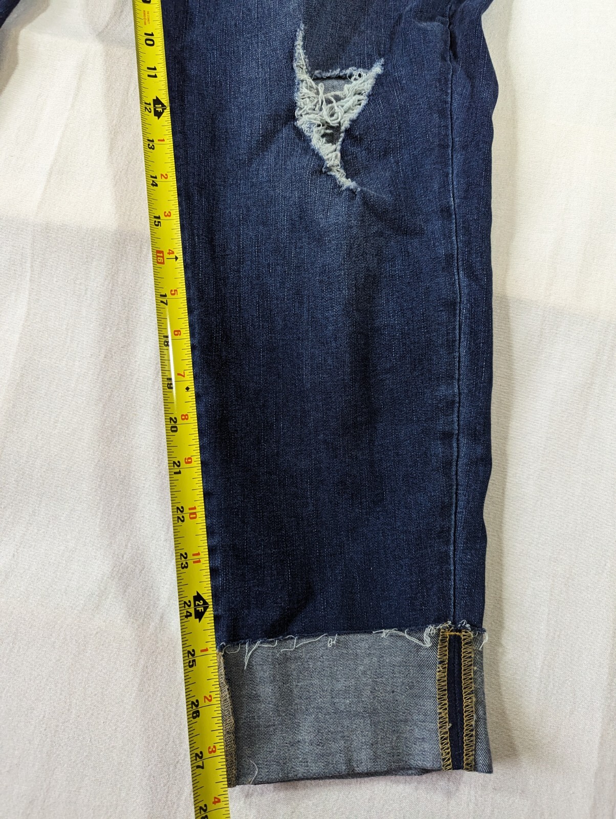Kancan Jeans Women's 3XL Sharon Skinny Ankle Distressed Cuffed Raw Hem Dark Wash