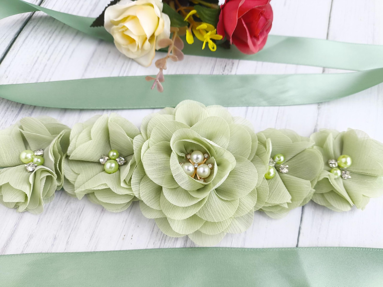как выглядит Pearl Sash Flower Girl Bridal Wedding Bridesmaid Belt Floral Sash Women фото