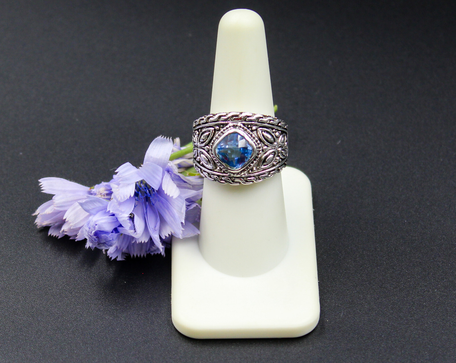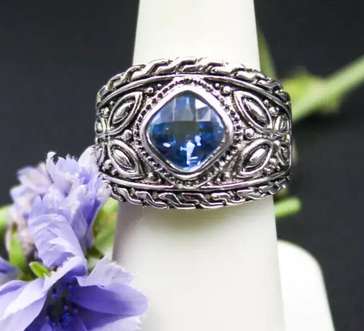 как выглядит Beautiful Blue Cubic Zirconia Sterling Silver 925 Ring Band Size 8 фото