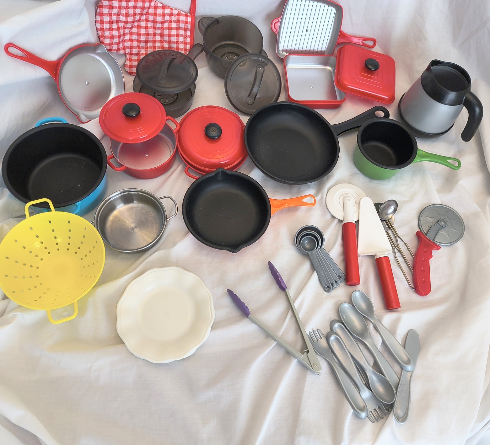 Lot Of Toy Play Kitchen Pots Pans Incomplete Mismatched 40 Pieces