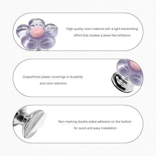 Push to Start Button Cover, Resin Flower Engine One-Touch Starter Purple