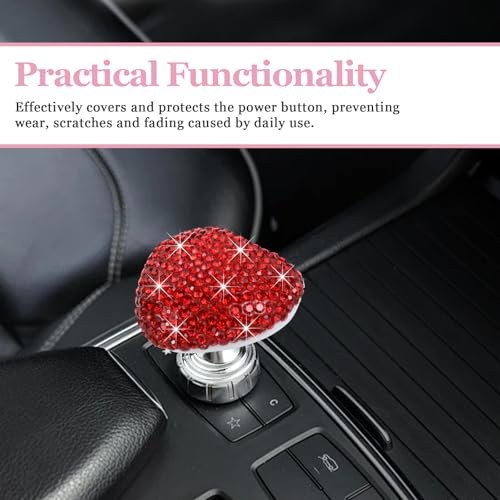 Bling Car Push Start Button Cover, Heart Shape One-Touch Start Button with Red