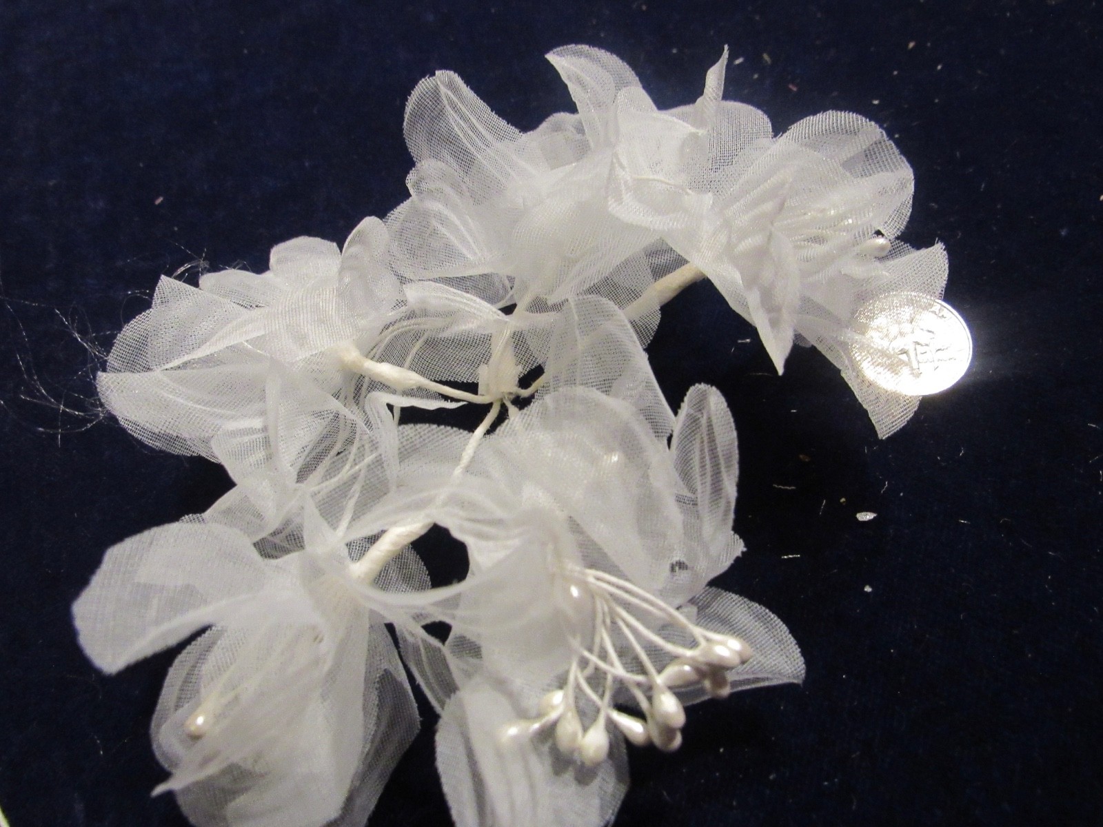 как выглядит Vtg Millinery Flower Collection White Retro Bridal Satin Pearls Chiffon H5505 фото