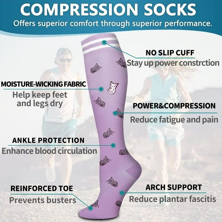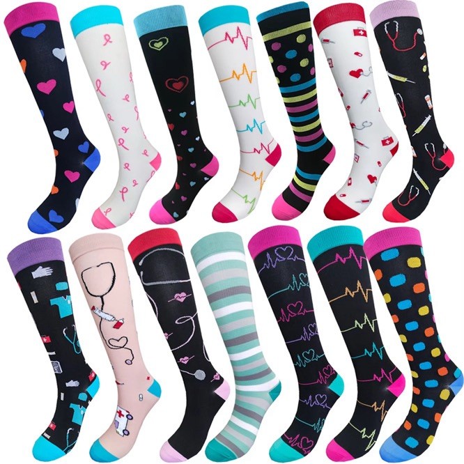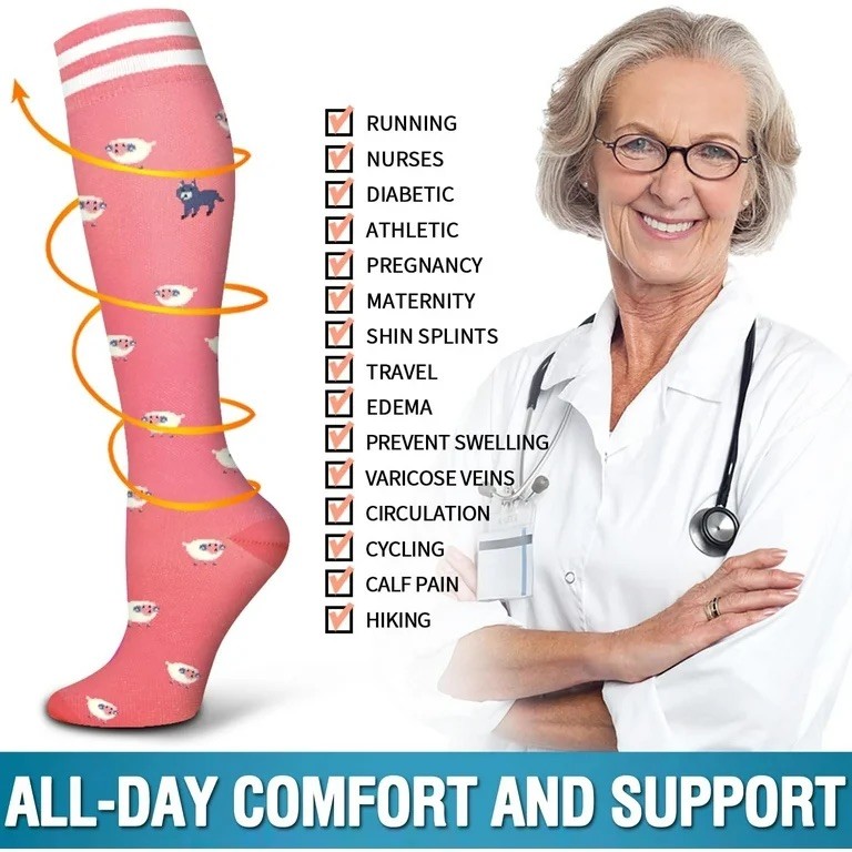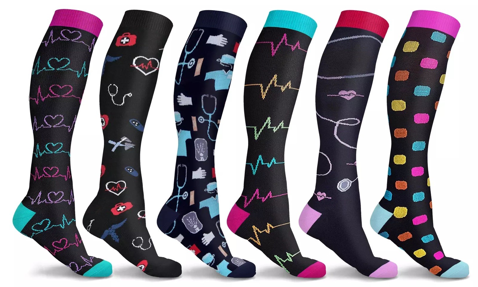 6 Pack of Compression Socks Stockings Women Knee High 20-30Mmg Medical Running