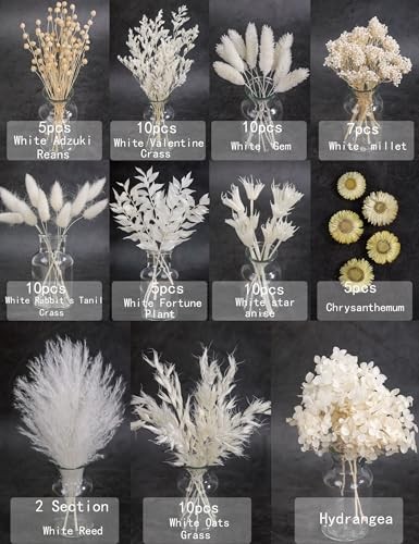 Natural Dried Flower Set, Bulk Dried Flowers with Stems, Dried Daisies, White