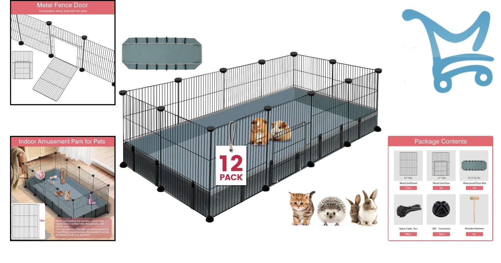 12 Panels Small Animal Playpen Iron Cage with Waterproof Mat Indoor Outdoor