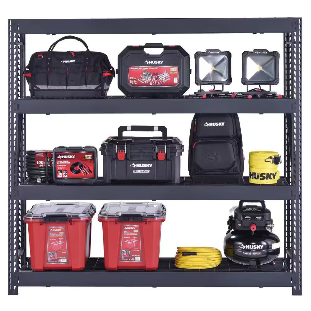 как выглядит 4-Shelf Metal Industrial Duty Freestanding Garage Storage Shelving Unit in Black фото