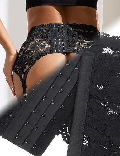 Black High Waisted Garter Belt for Thigh Highs Stockings Strap Metal Clip S..