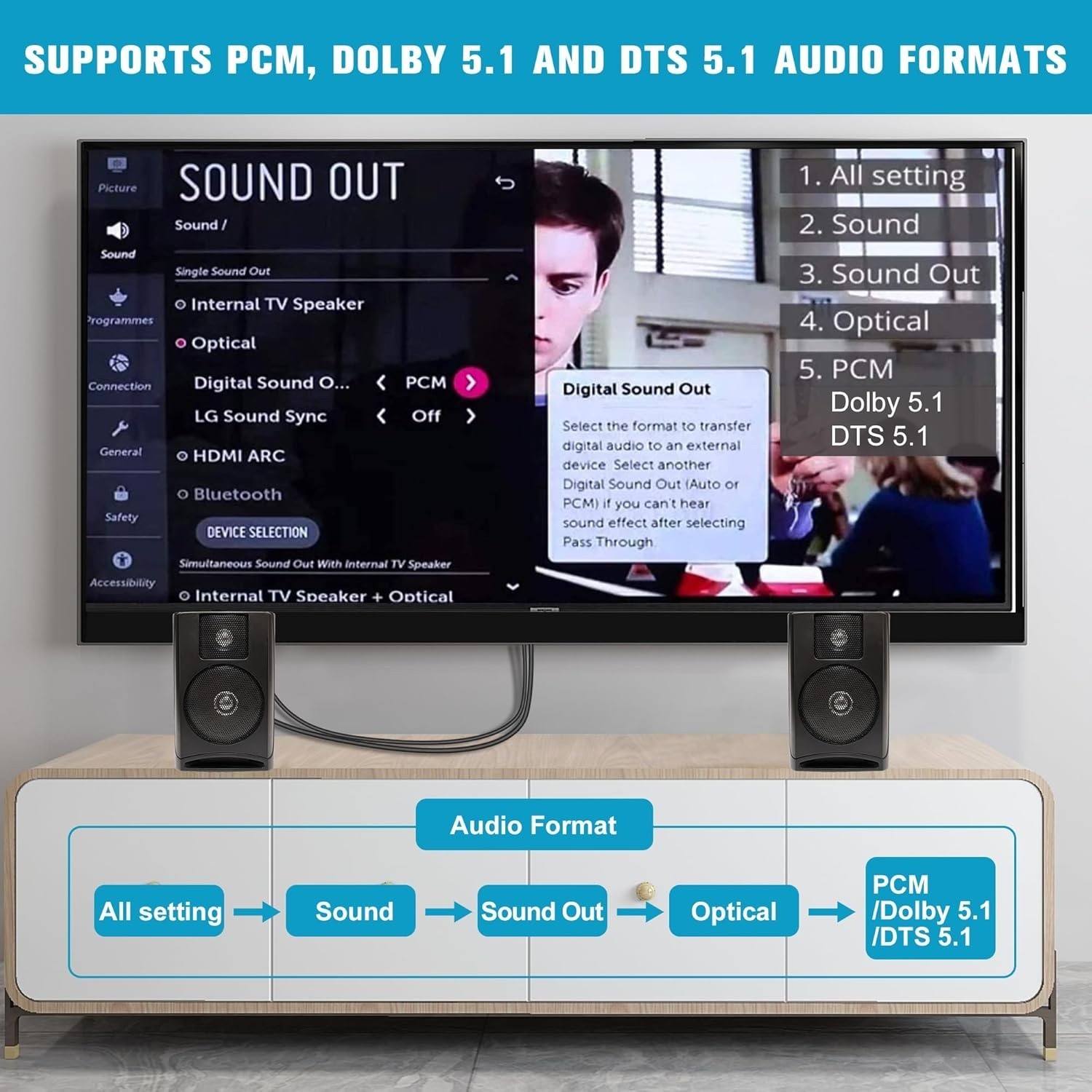 Audio Formats Supported: PCM, LPCM, Dolby Digital 5.1, DTS 5.1