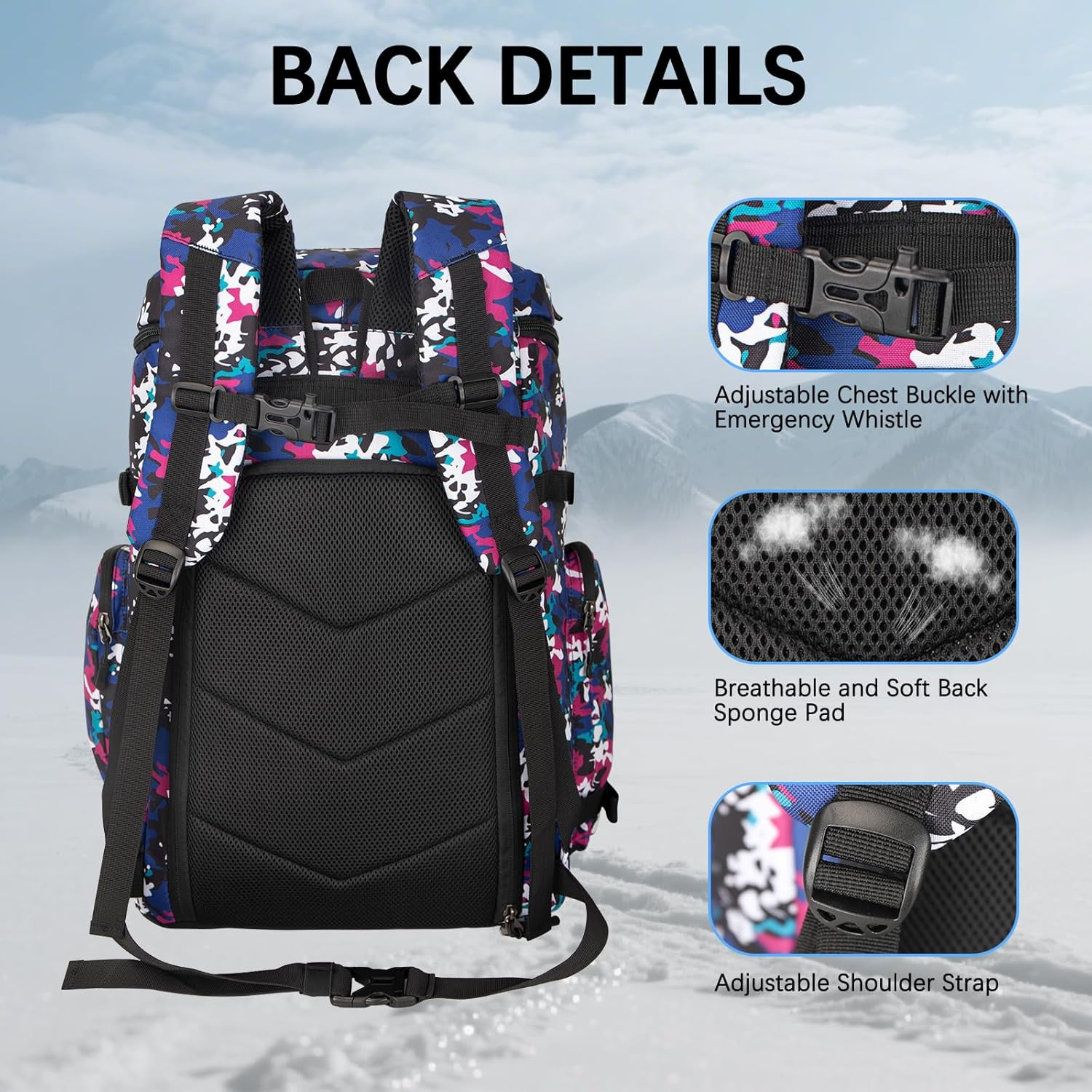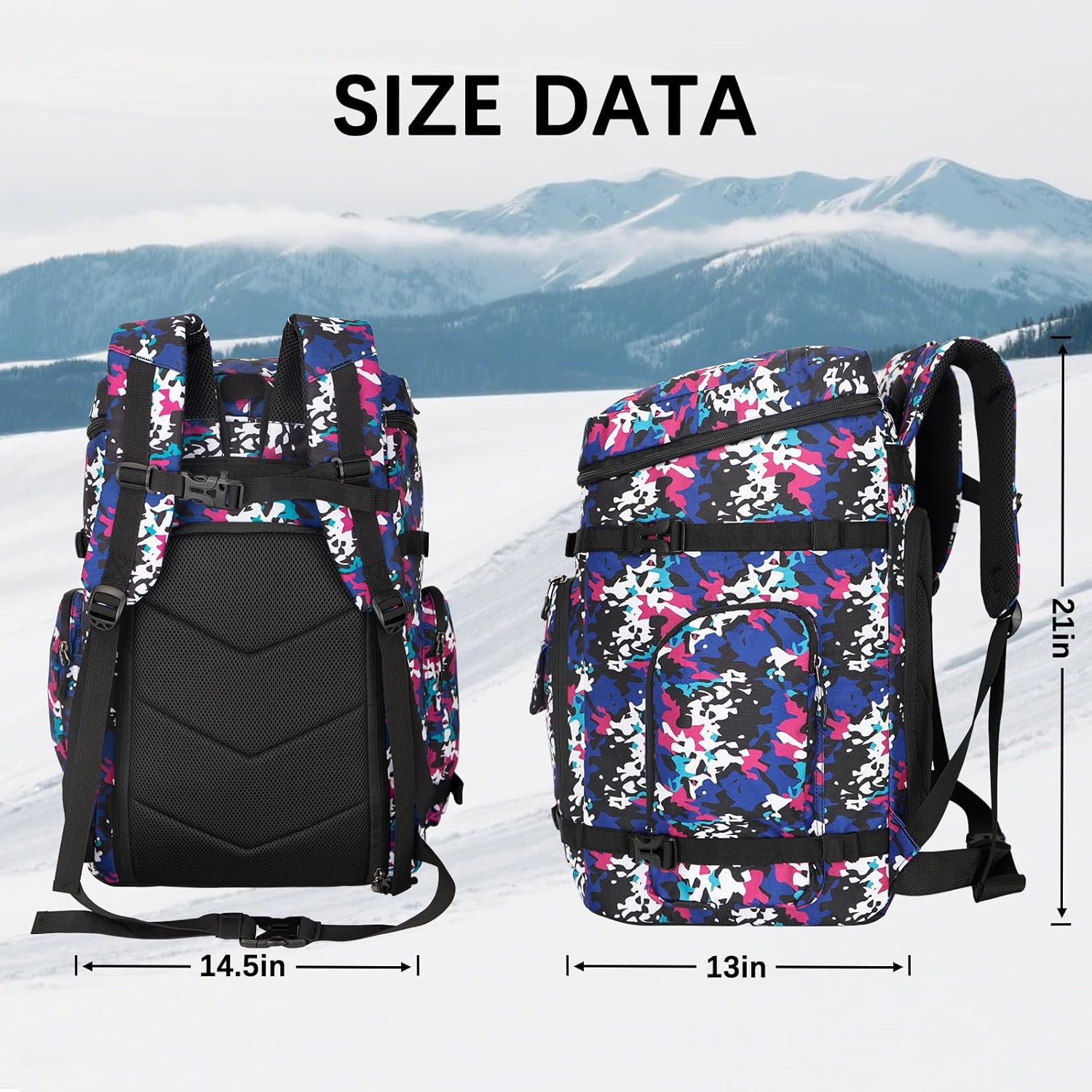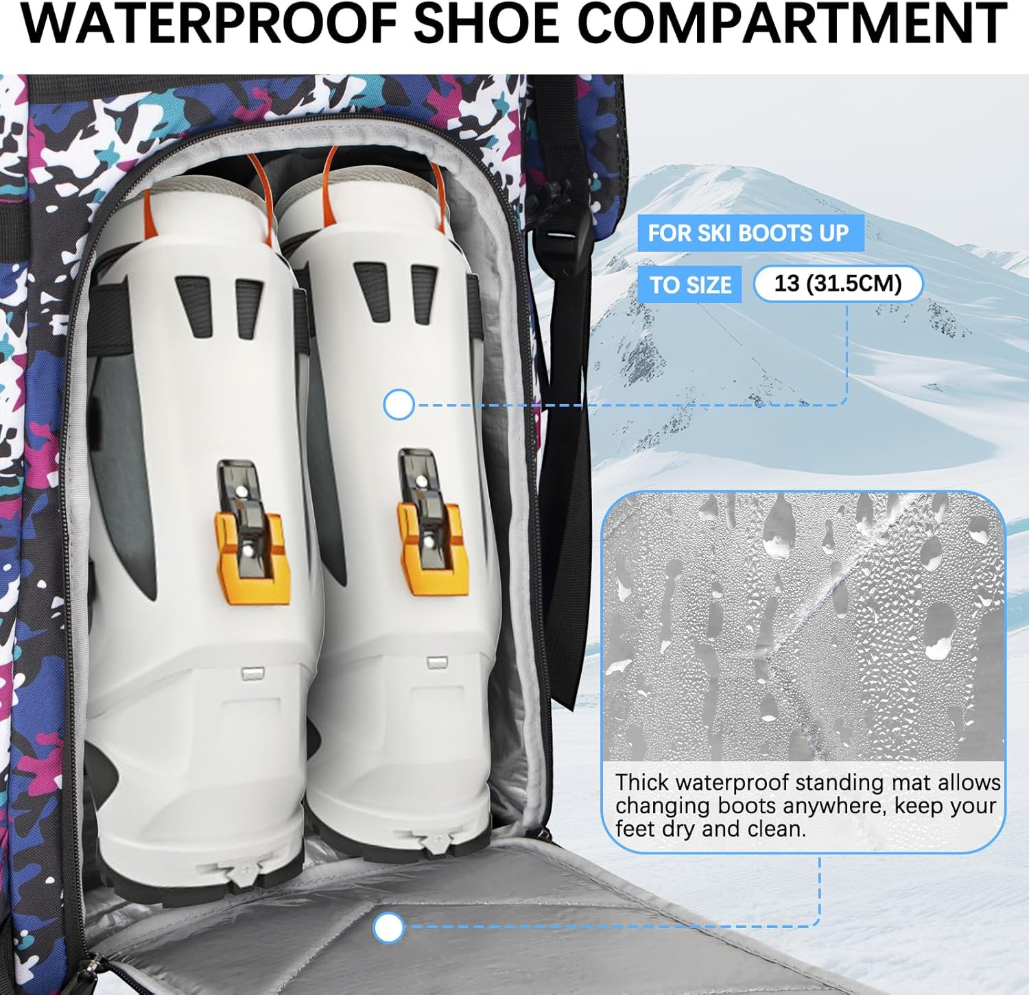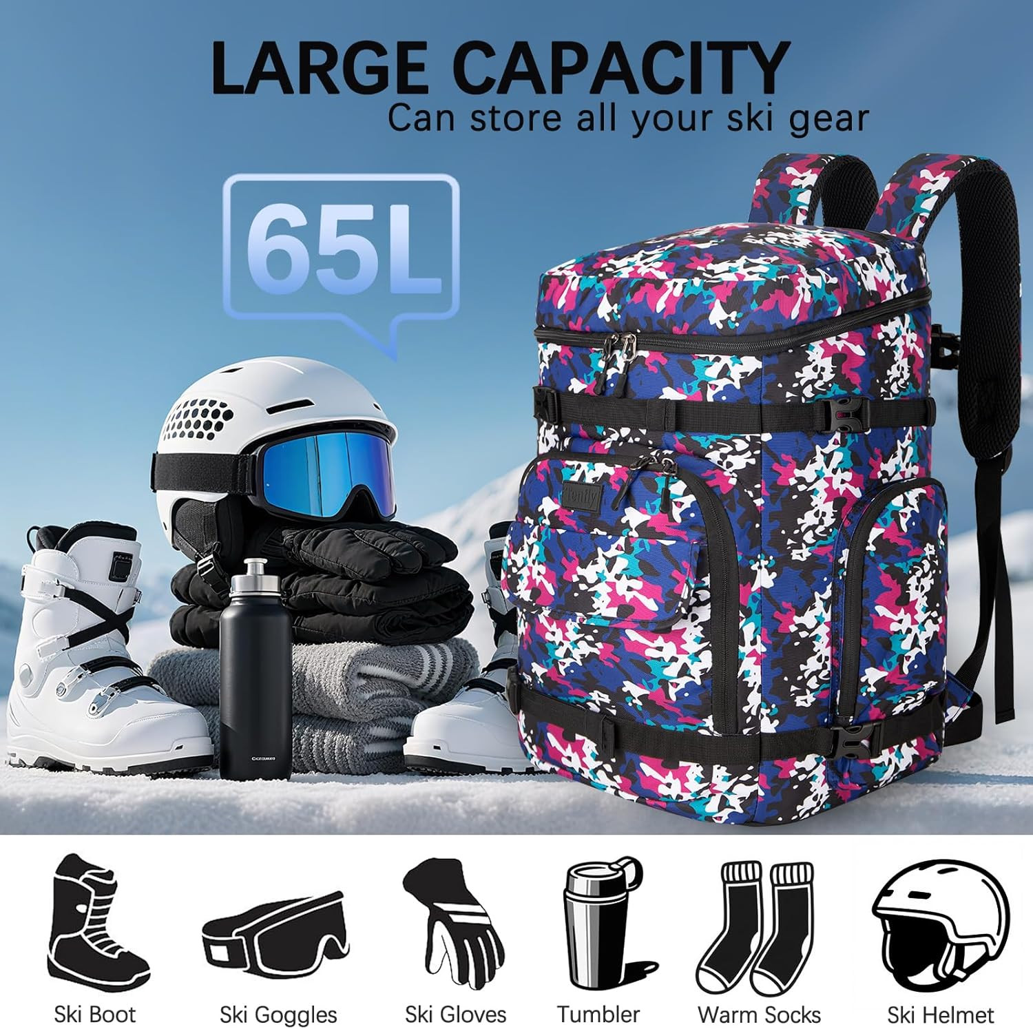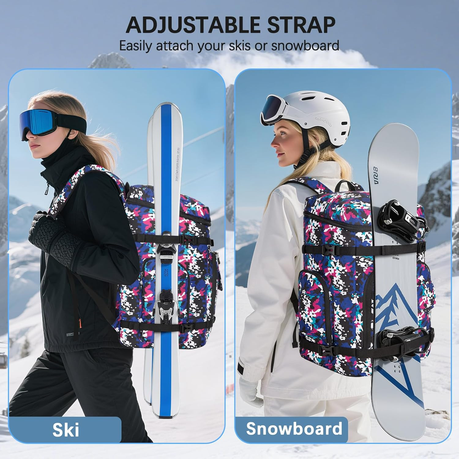 Ski Boot Bag,65L Snowboard Boot Bag for Air Travel,Padded Ski Bakcpack for Helme
