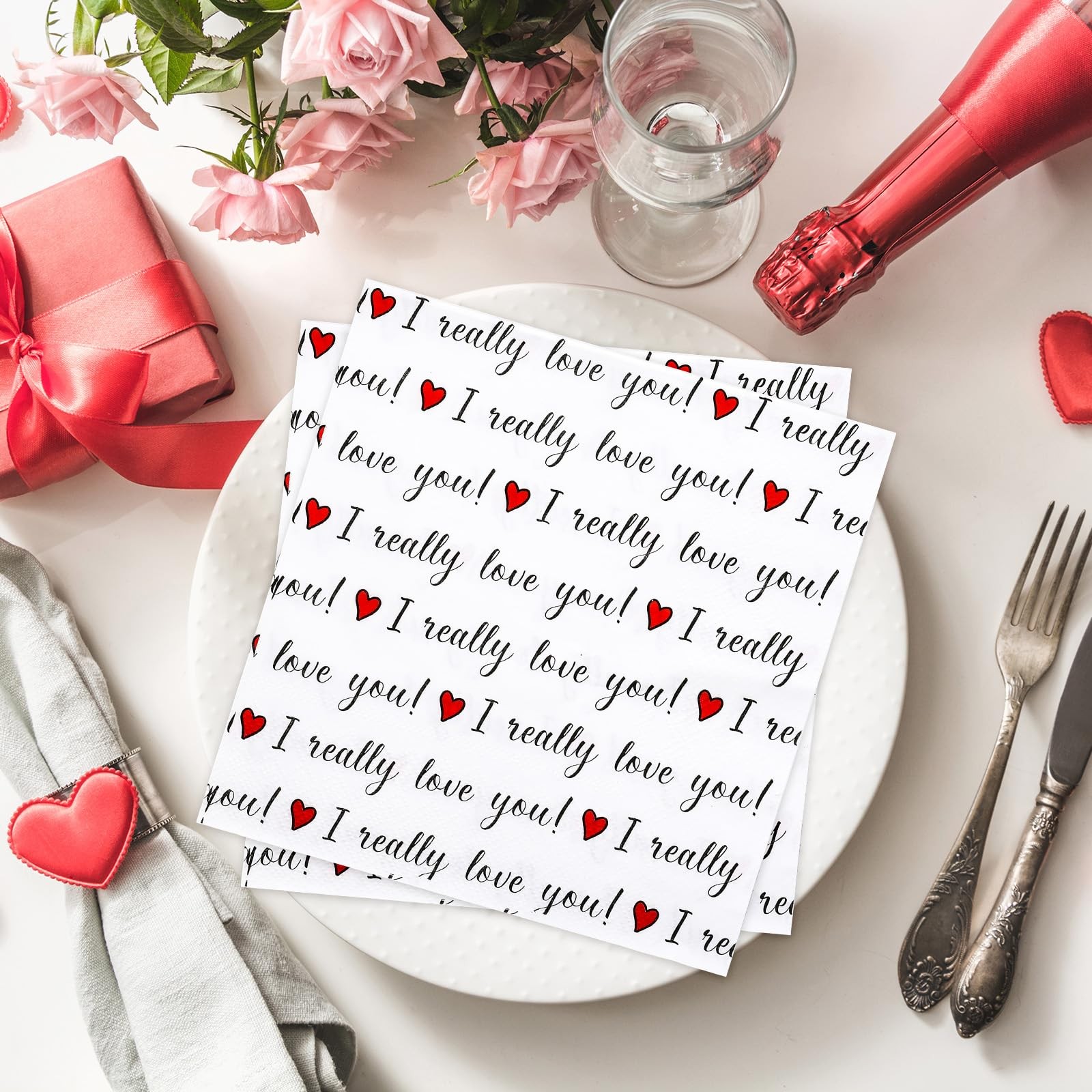 50Pcs Valentine's Day Paper Napkins Love Heart Disposable Napkins I Really Love
