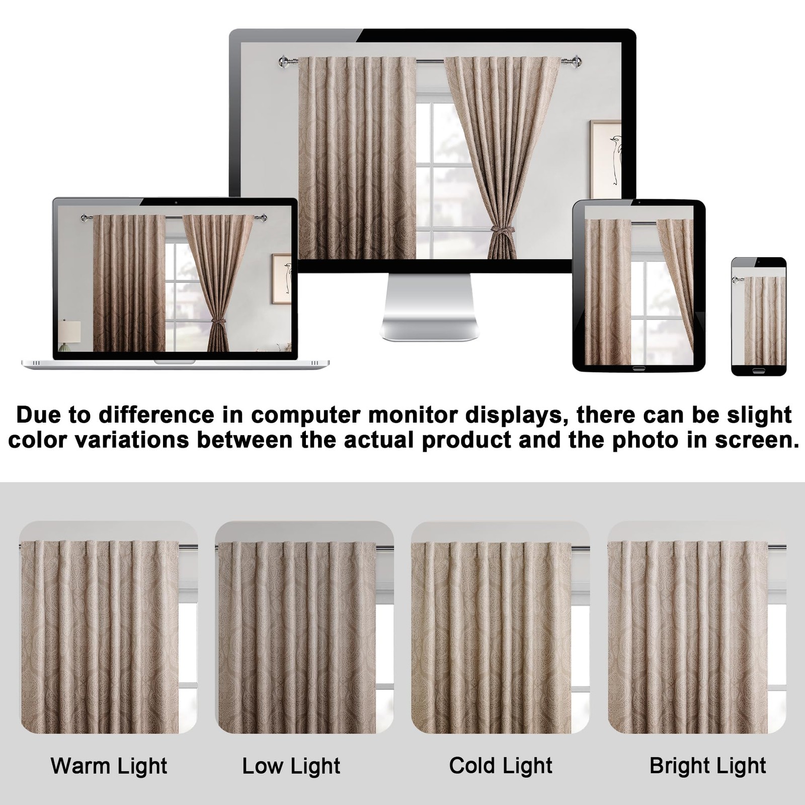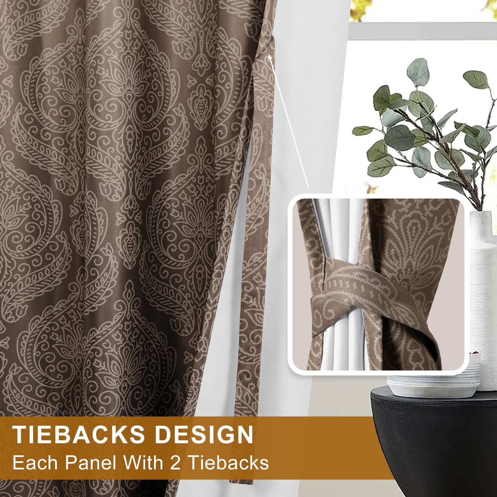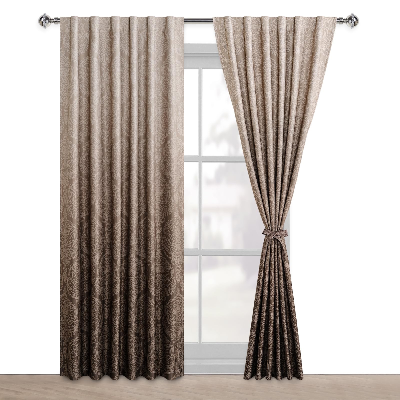 как выглядит Brown Blackout Curtains 84 inches Length - Ombre Damask Patterned Back Tab/Ro... фото