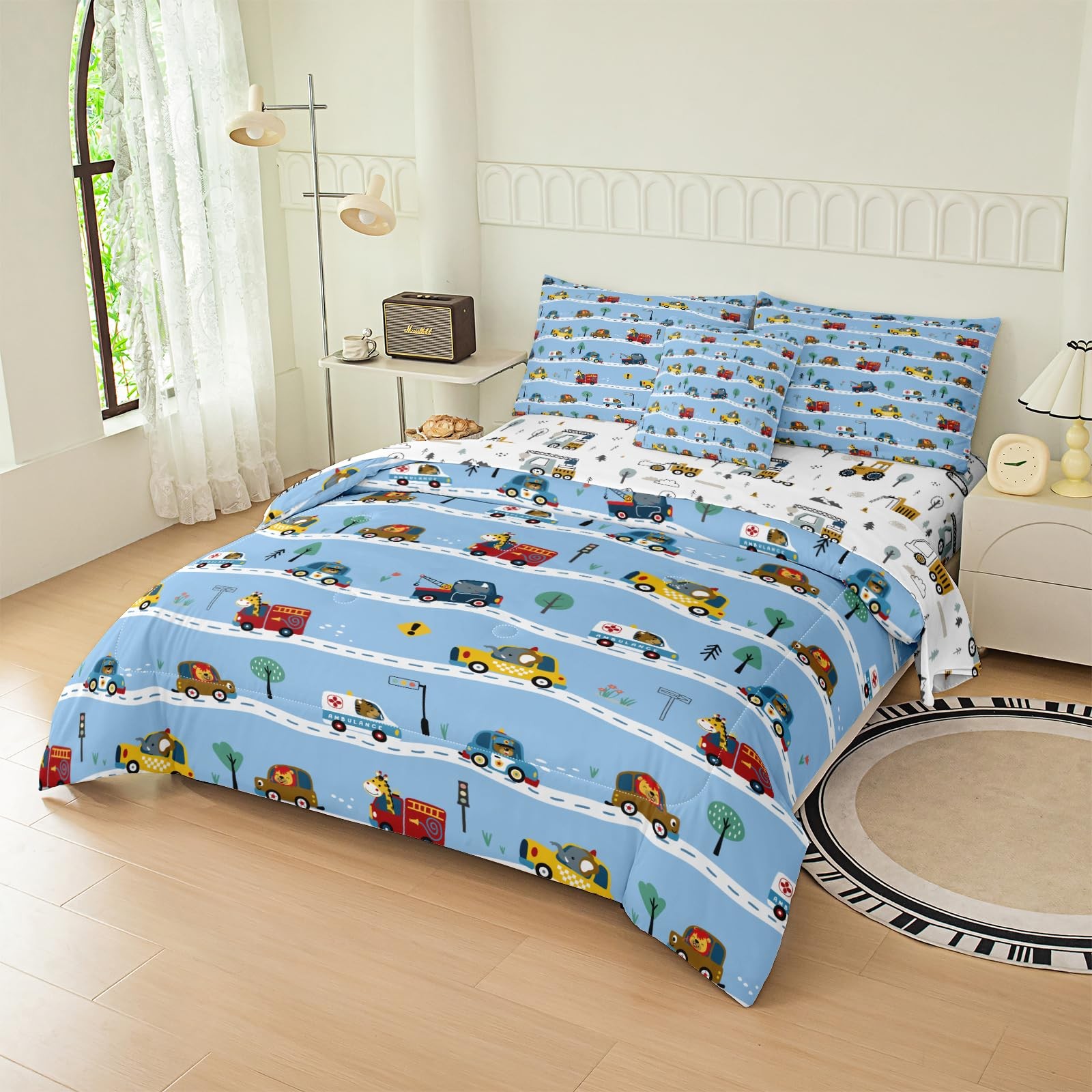 6pc Construction Comforter Set for Boys,Twin Size Tractor Bedding Sets for Te...