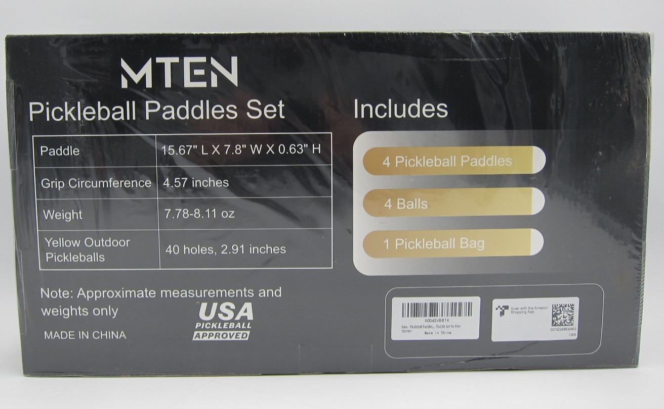 MTEN USAPA Approved Fiberglass Surface Pickleball Set W Pickleball Rackets NEW