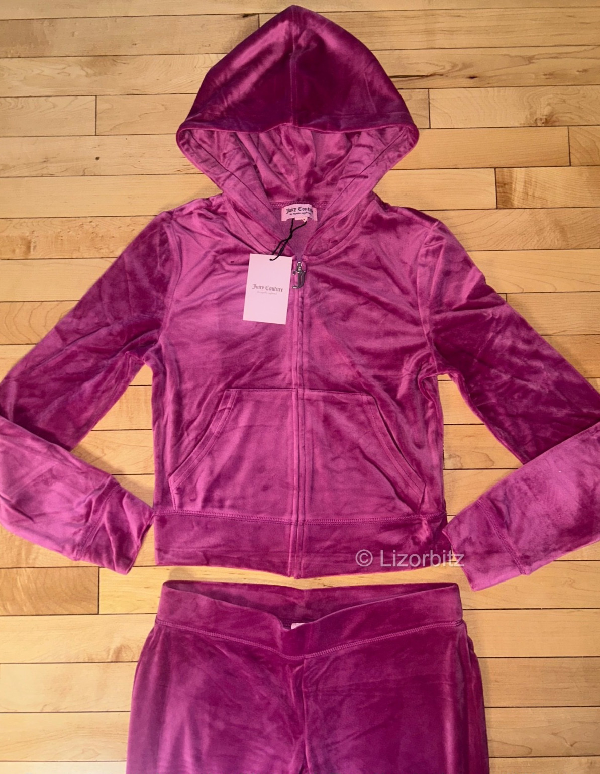 NEW NWT JUICY COUTURE Velour OG Bling Tracksuit Set in Fuchsia Pink Size M