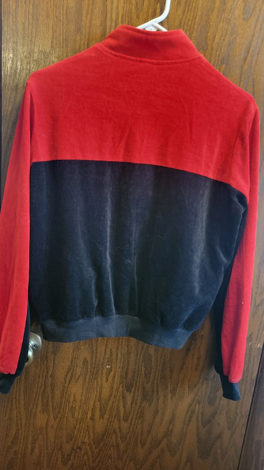 как выглядит Jantzen 80s Velour Full Zip Jacket Women Size Med Pockets Purple Red 44x22 фото