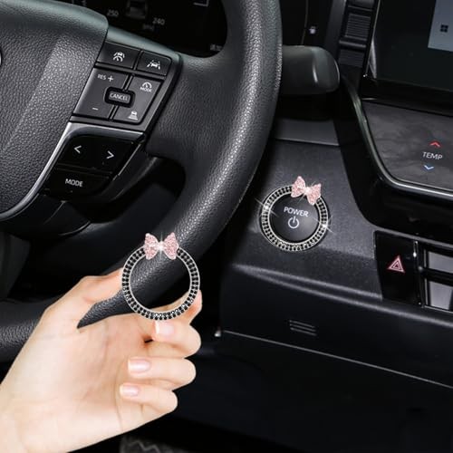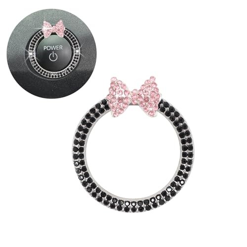 Bow Car Accessories,Pink Bow Tie Push Start Button Rhinestone Black Ring