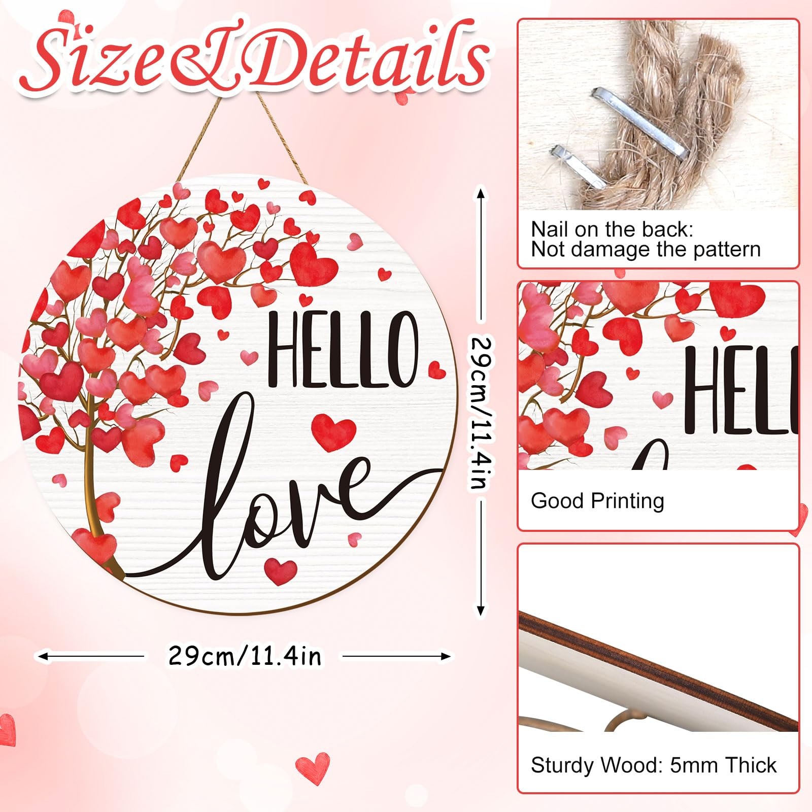 Valentine's Day Wooden Hanging Sign Hello Love Welcome Wood Sign Watercolor Red