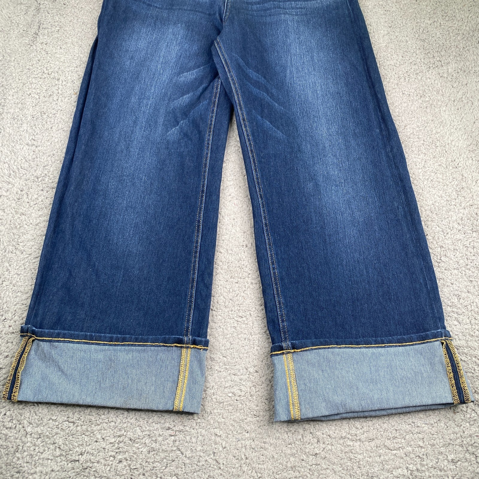 как выглядит Halara Flex Jeans Womens Small Blue Rolled Hem Wide Leg High Waisted Denim фото