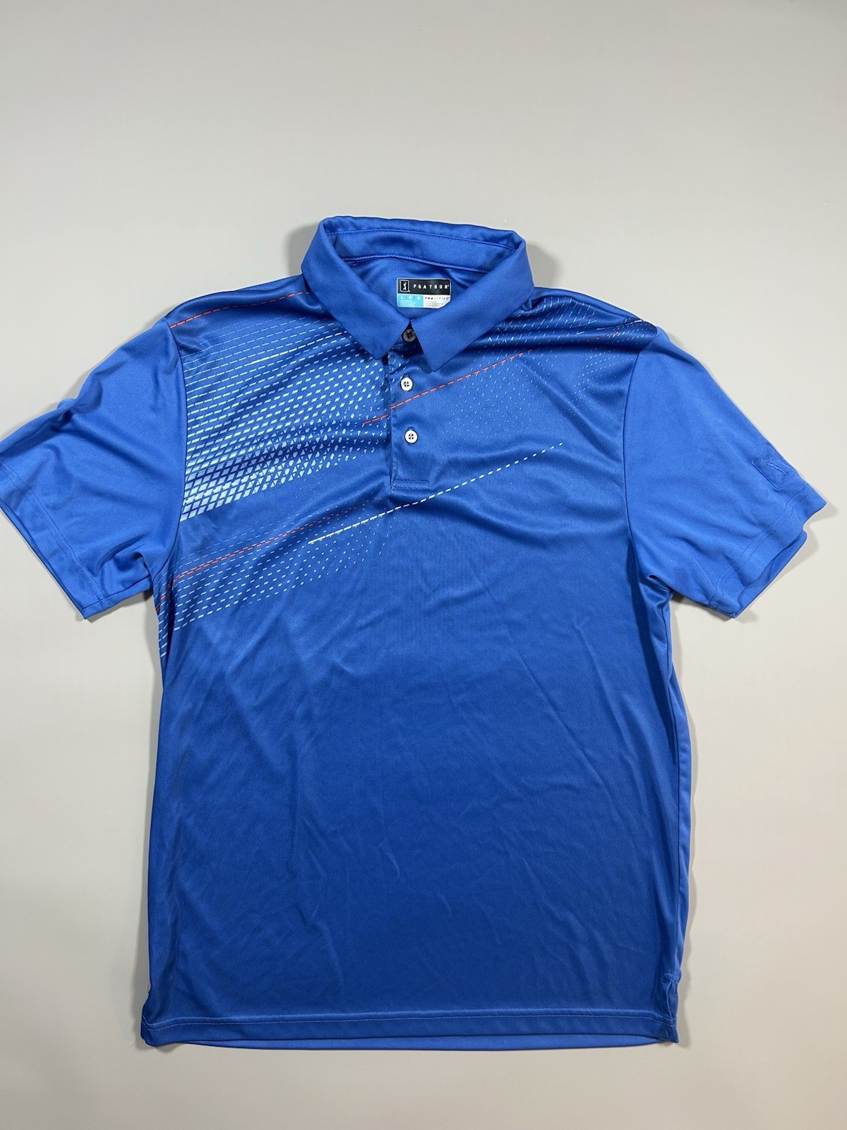 как выглядит PGA Tour Polo Shirt Mens Large Blue Short Sleeve Golf GeometricPrint фото
