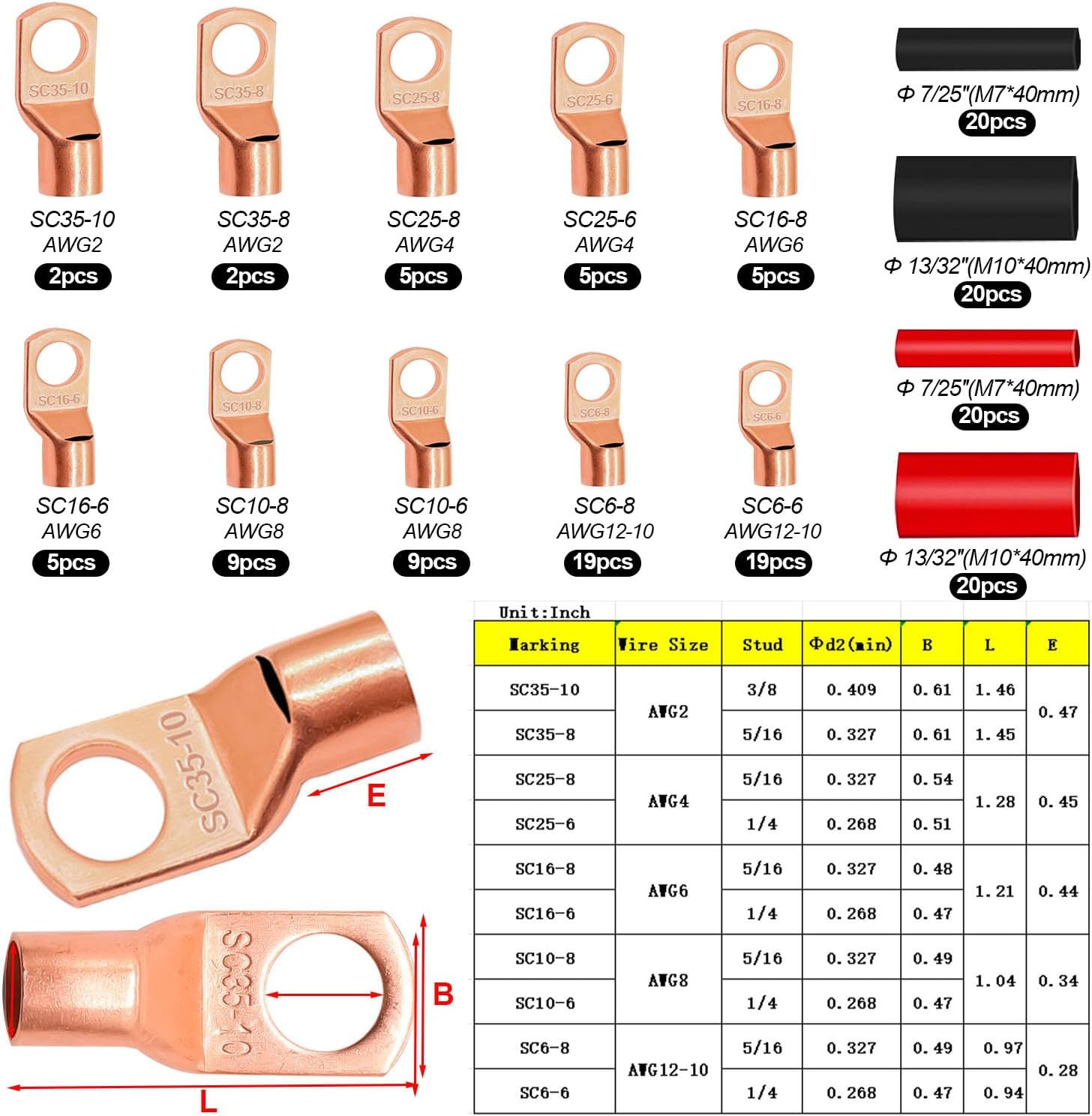 как выглядит 160PCS Battery Cable Ends with Hammer Lug Crimper Tool,Awg 2/4/6/8/10/12 Gauge C фото