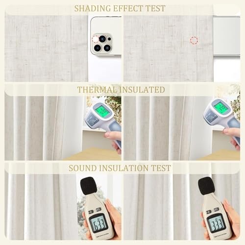 как выглядит Pinch Pleated Linen Blackout Curtains 84 Inch 40"W x 84"L Pack of 2 Natural фото