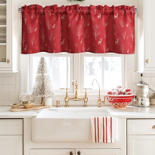 52x18 Inch Extra Wide Christmas Valance - 52W x 18L Pack of 1 Red Reindeer