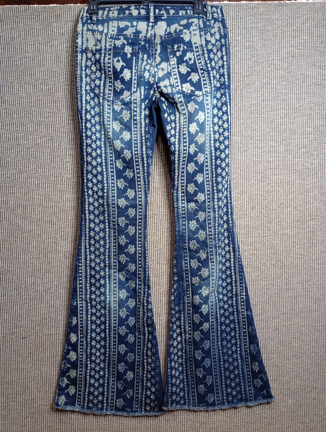 Free People Printed Flowers Stripes Flare Jeans Size 27