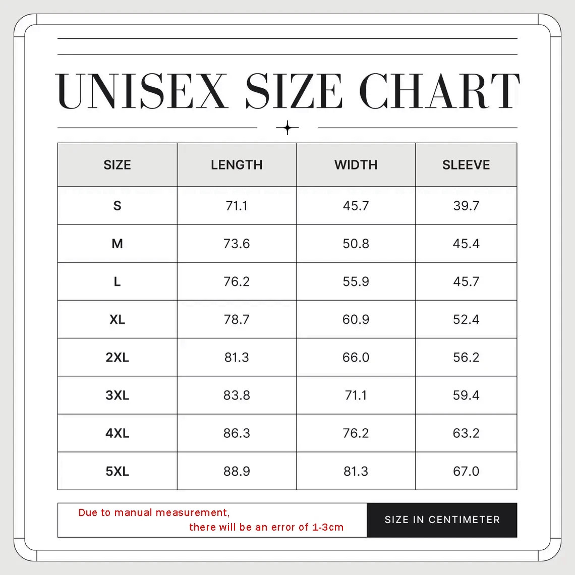 please read: write your size in the box