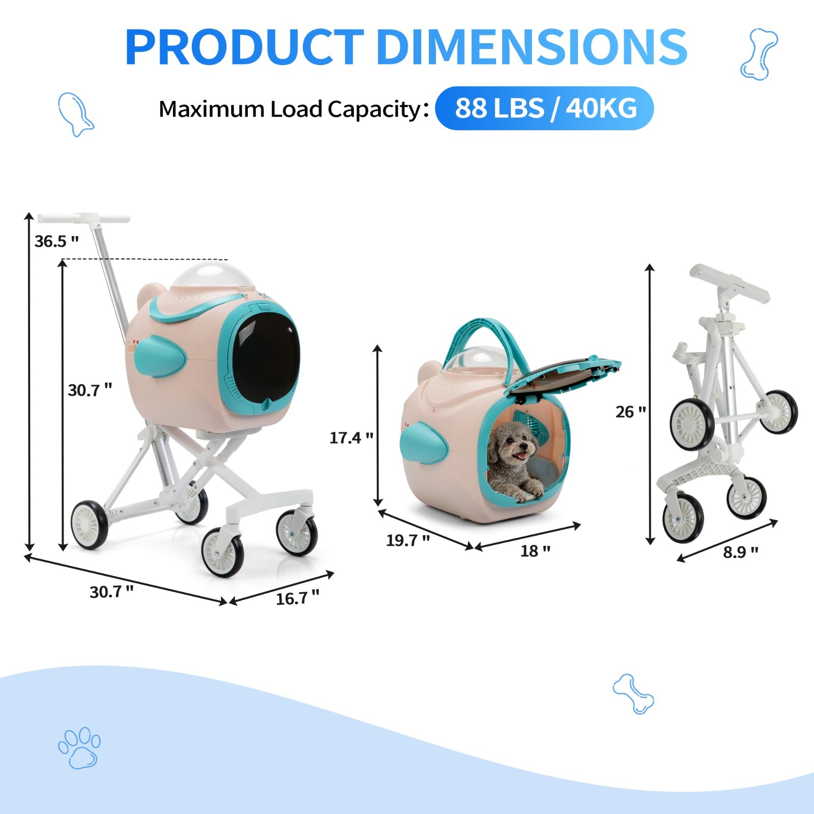 4 Wheels Pet Stroller for Small Dog and cat Folding 42L Detachable Pet Carrier