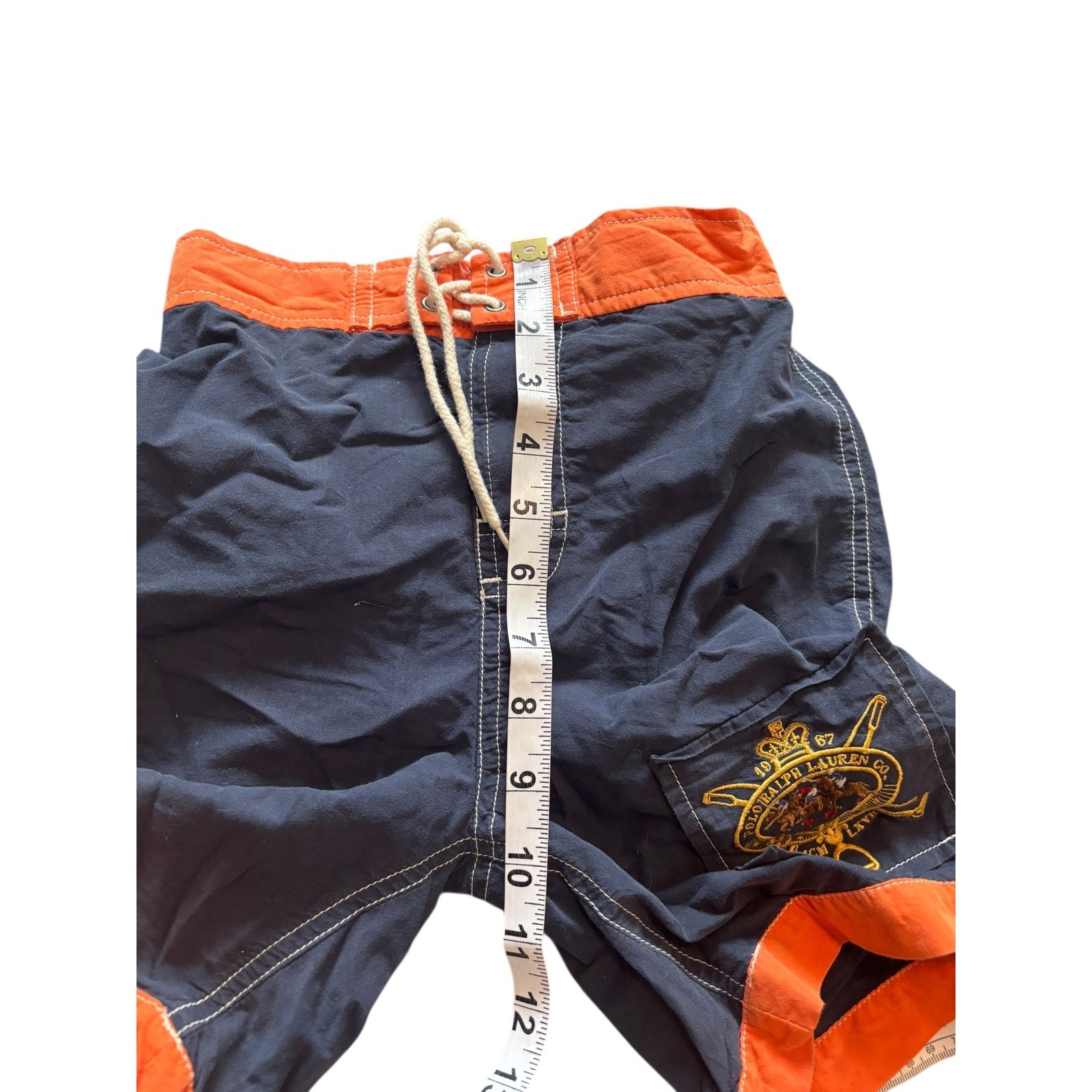 Polo Ralph Lauren Boys Swim Trunks Size 6 Navy Orange Logo Patch