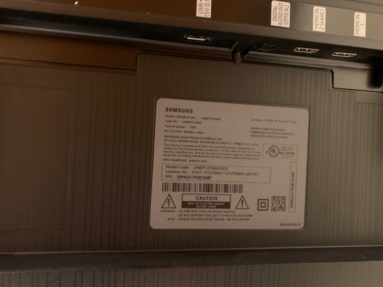 Samsung 65 Class TU7000 4K UHD Smart TV Model: UN65TU7000F