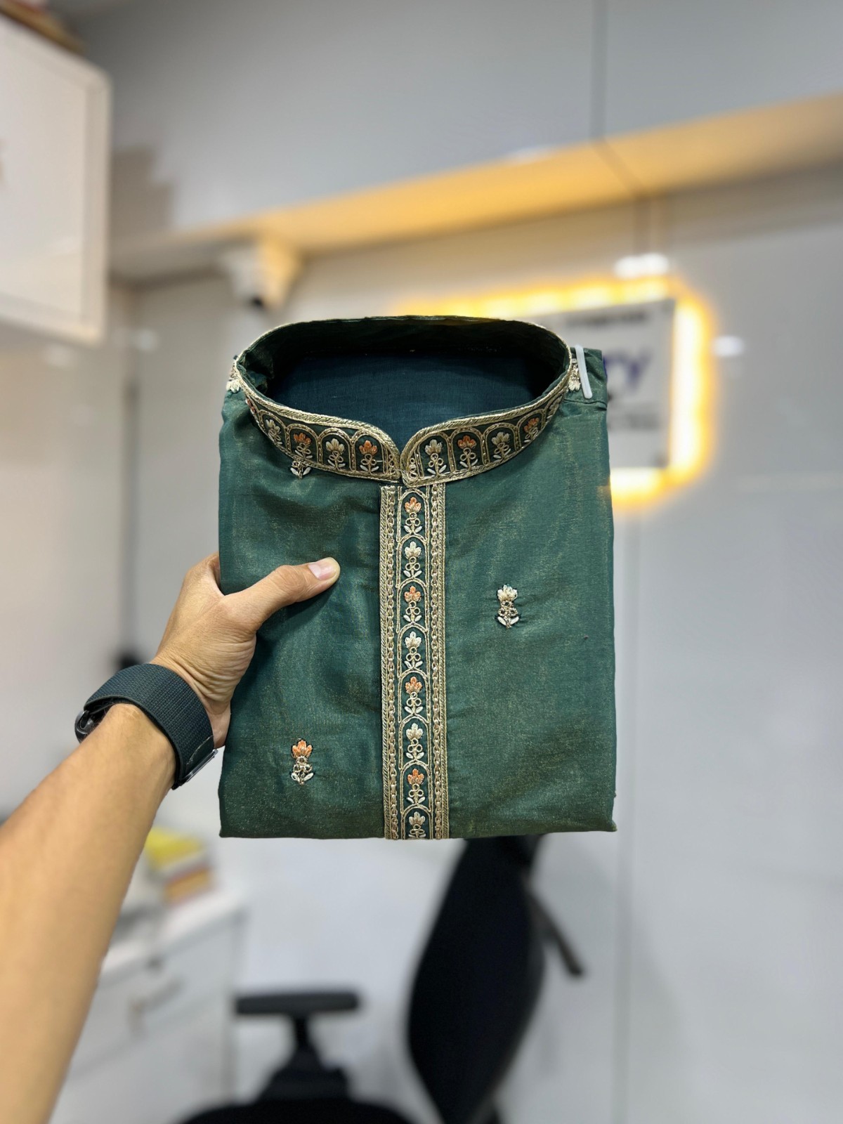 KURTA WORK: EMBROIDERY WORK WITH DOUBLE GOLDEN SEQUENCE