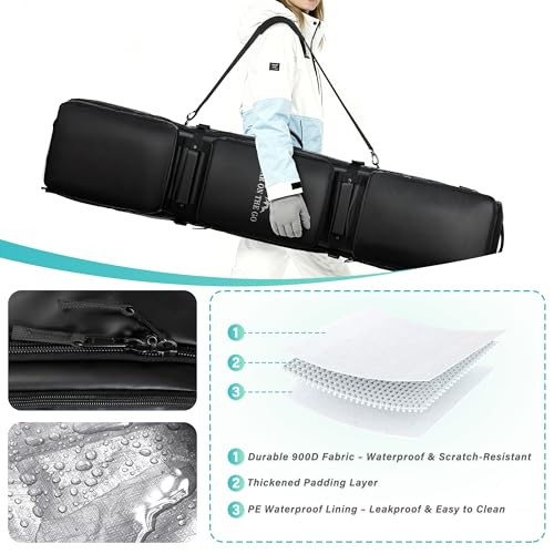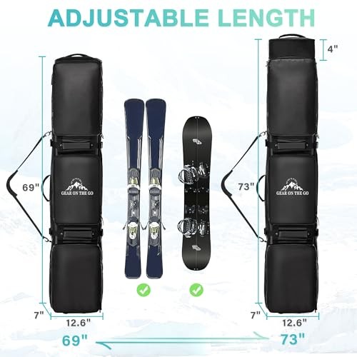 Ski Bag with Wheels, Extendable Snowboard Bag, 69-73H x 12.6W x 7D