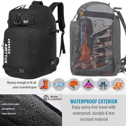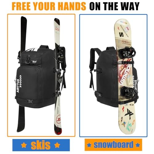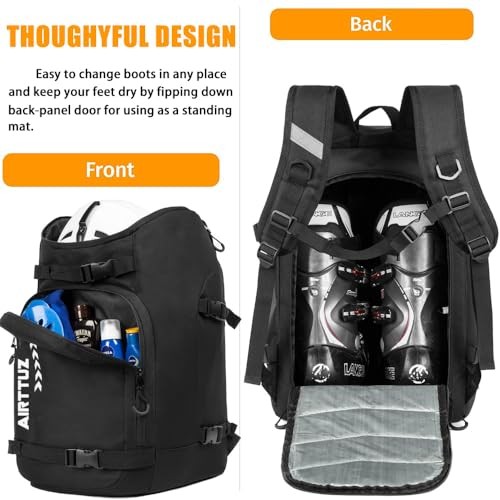 Ski Boot Bag - Ski and Snowboard Boots Backpack Excellent for Travel with BLACK