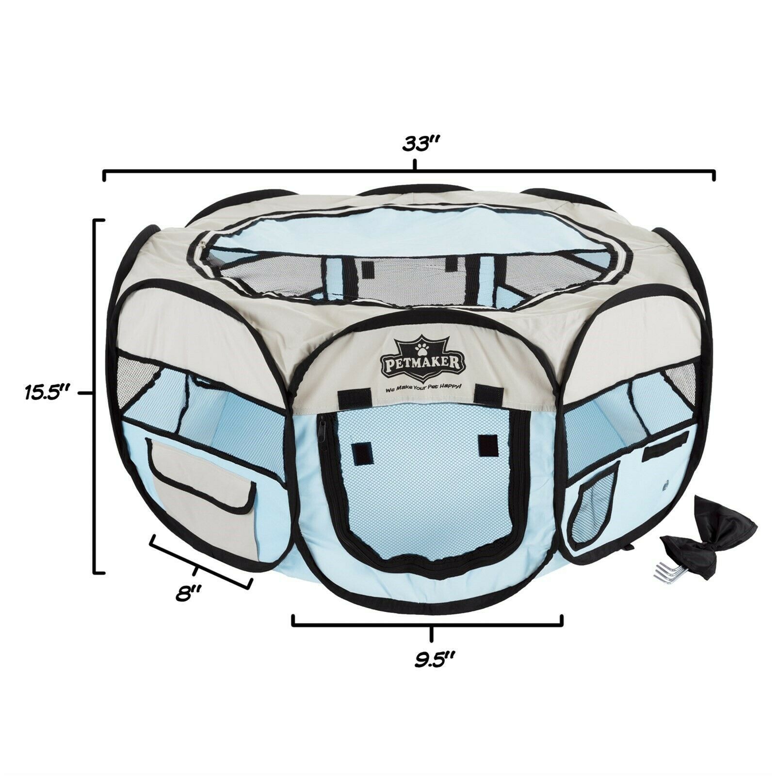 Portable Pop Up 33 Inch Diameter Pet Play Pen Outdoor Indoor Blue 15 Inches High