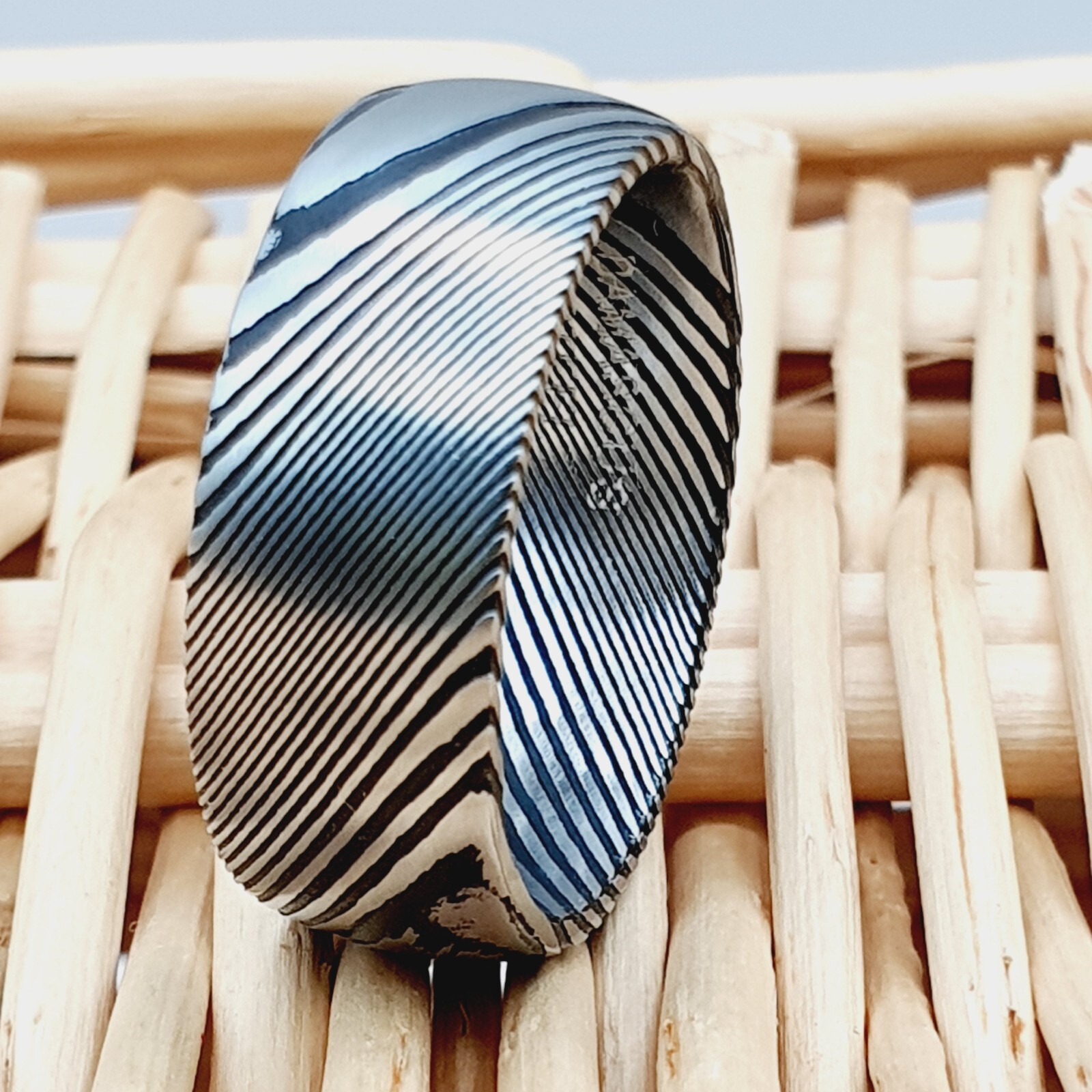 Unique Damascus Steel Wedding Ring Men Women Anniversary Ring Dome Ring