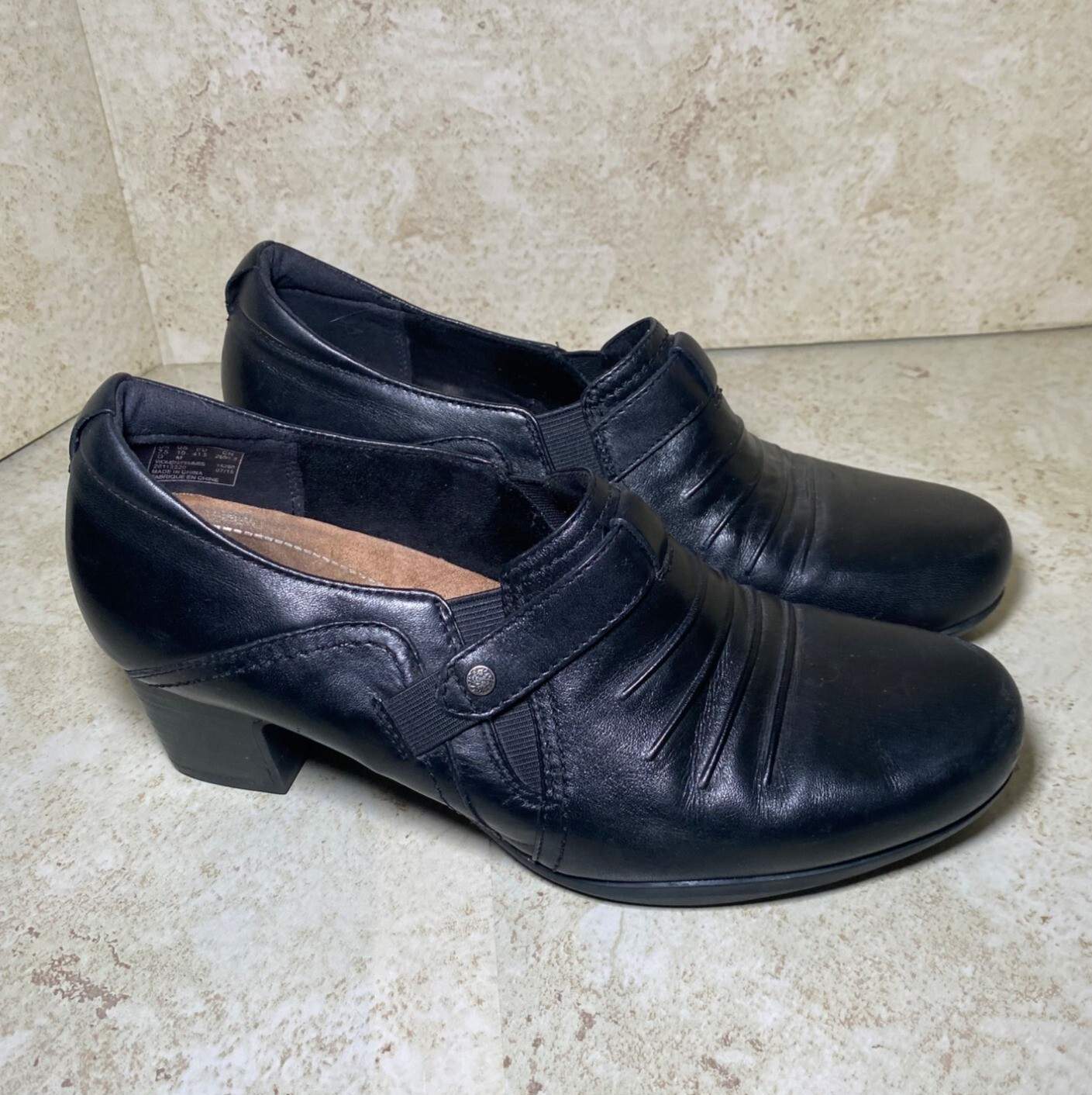 Clarks Black Leather Womens Heeled Loafers Casual Comfort Workwear