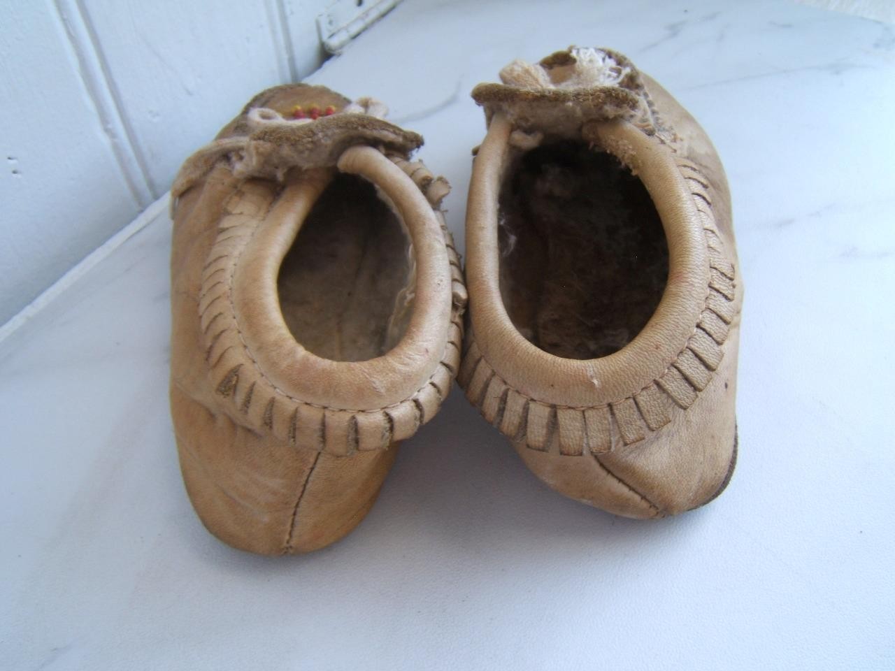 как выглядит VINTAGE CHILDS LEATHER MOCCASINS W/ WEAR фото