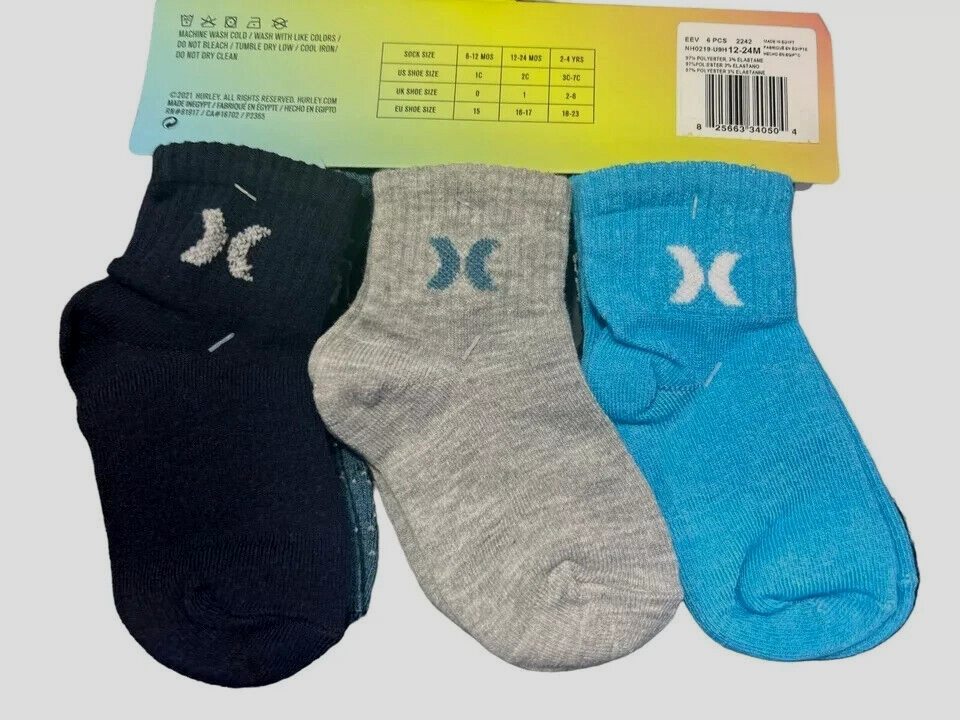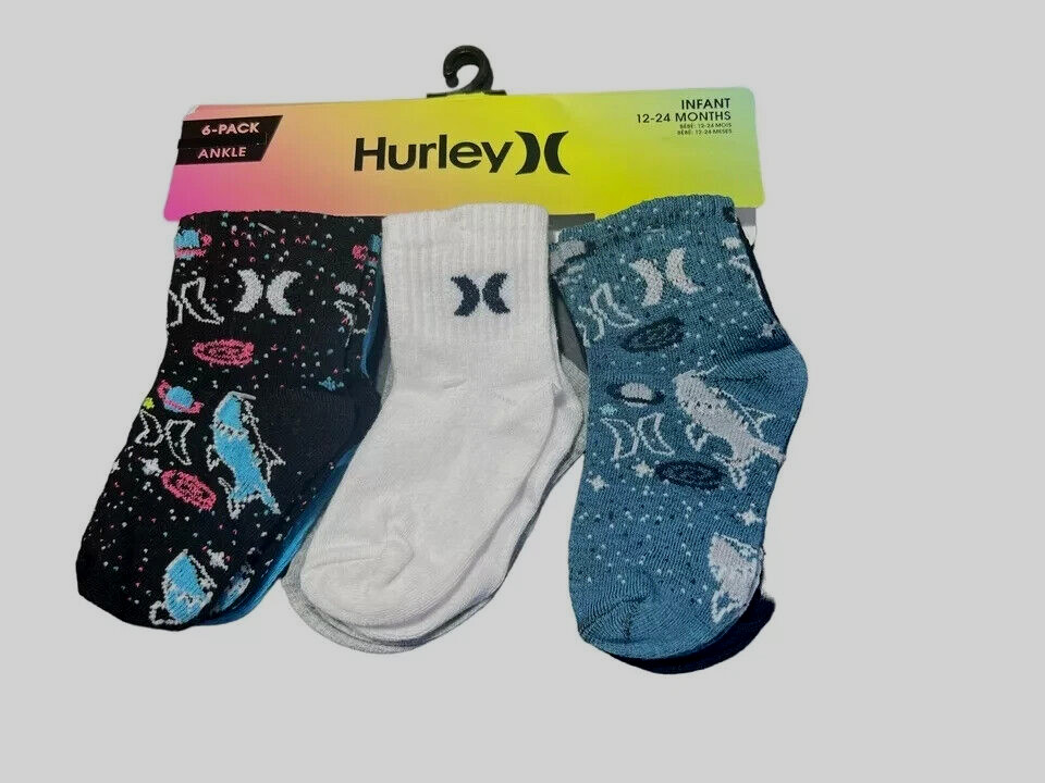 Hurley 6 Pair Ankle Socks 12-24 Months Girls And Boys Baby Infant Toddler
