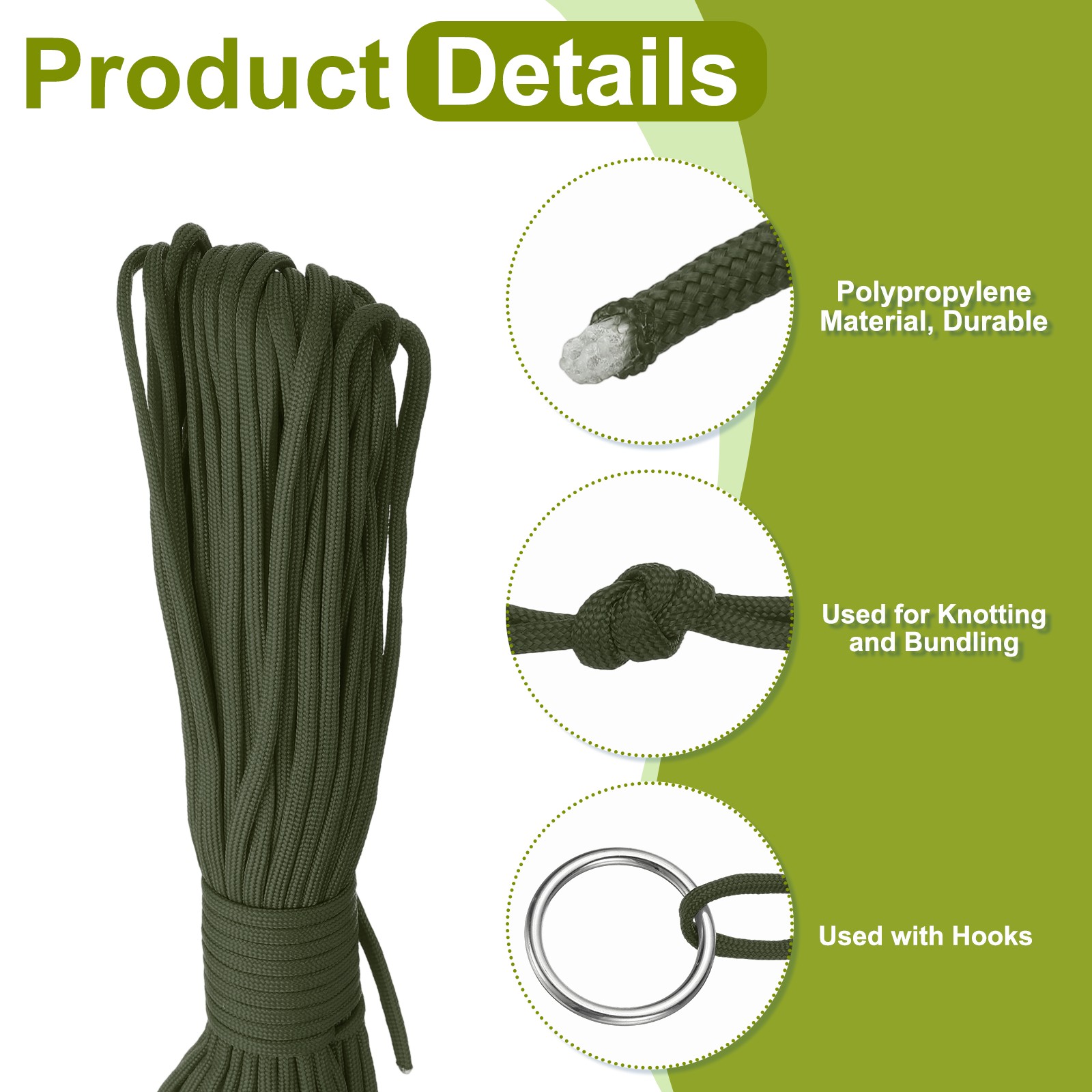 Line Nylon Cord, 10ft Portable Travel Clothesline for Camping Home, Green