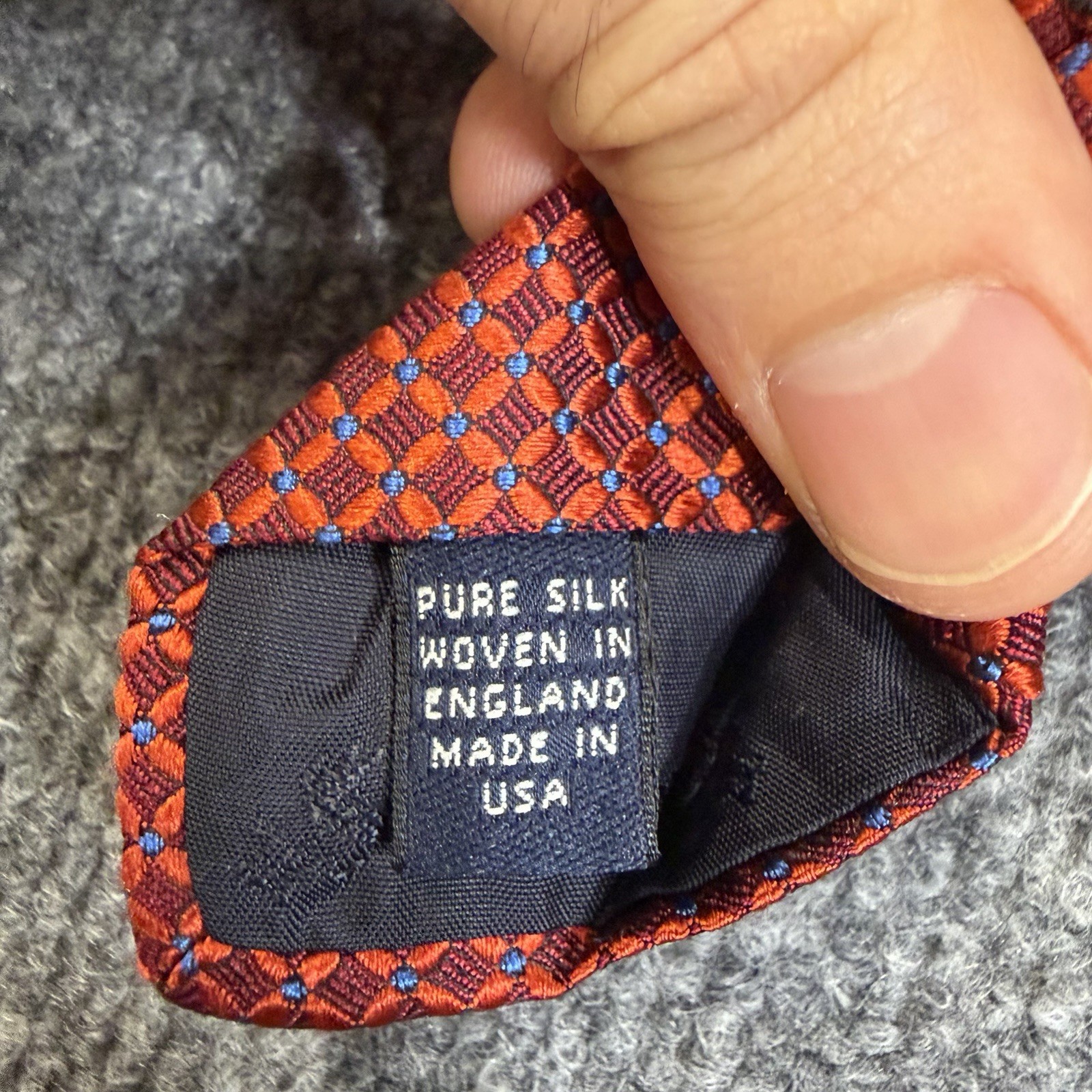 как выглядит Brooks Brothers Silk Tie Mens Red Square Pattern 100 Pure Silk- Made in USA NWT фото