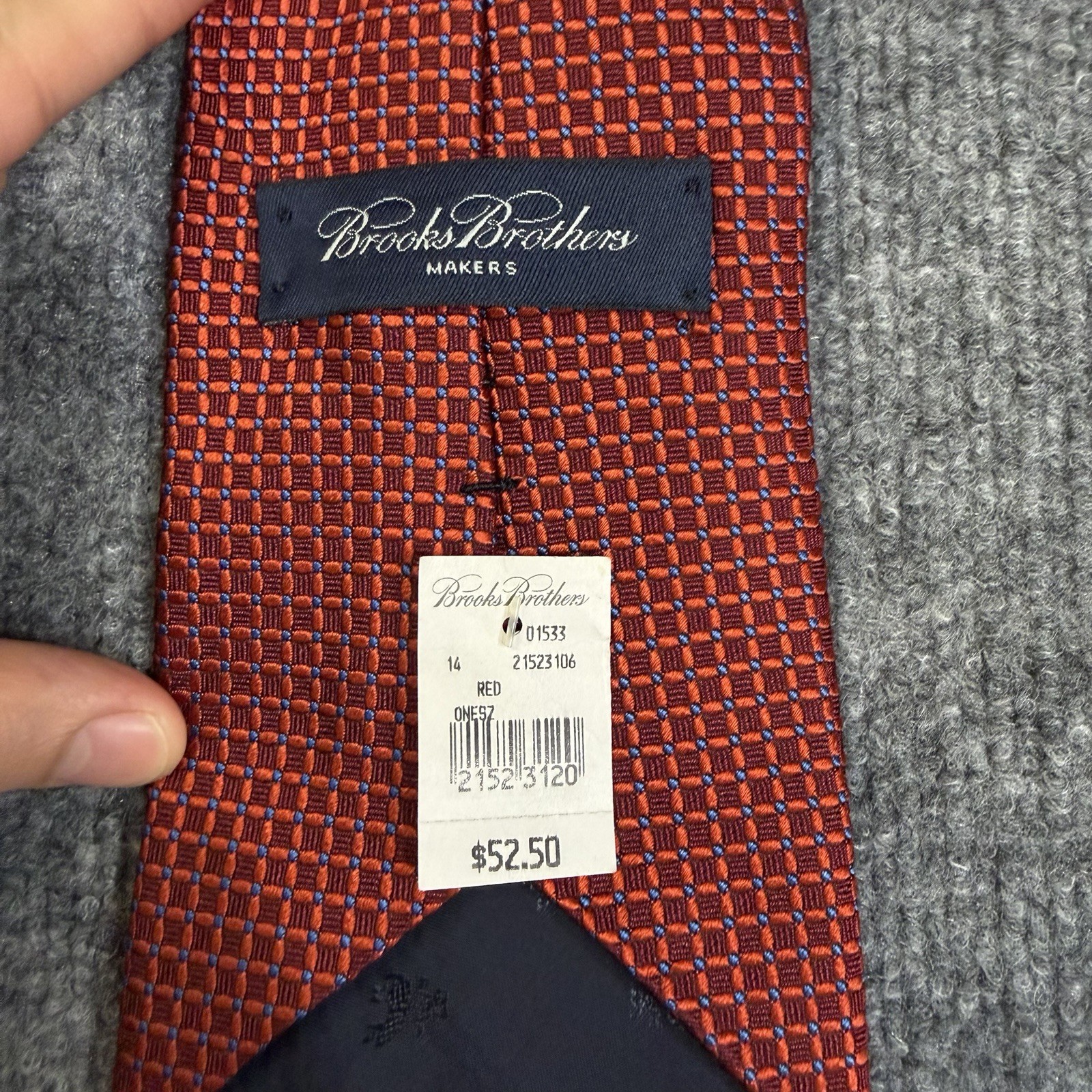 Brooks Brothers Silk Tie Mens Red Square Pattern 100 Pure Silk- Made in USA NWT