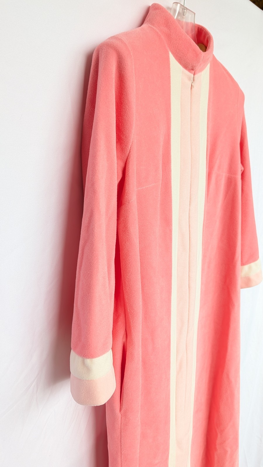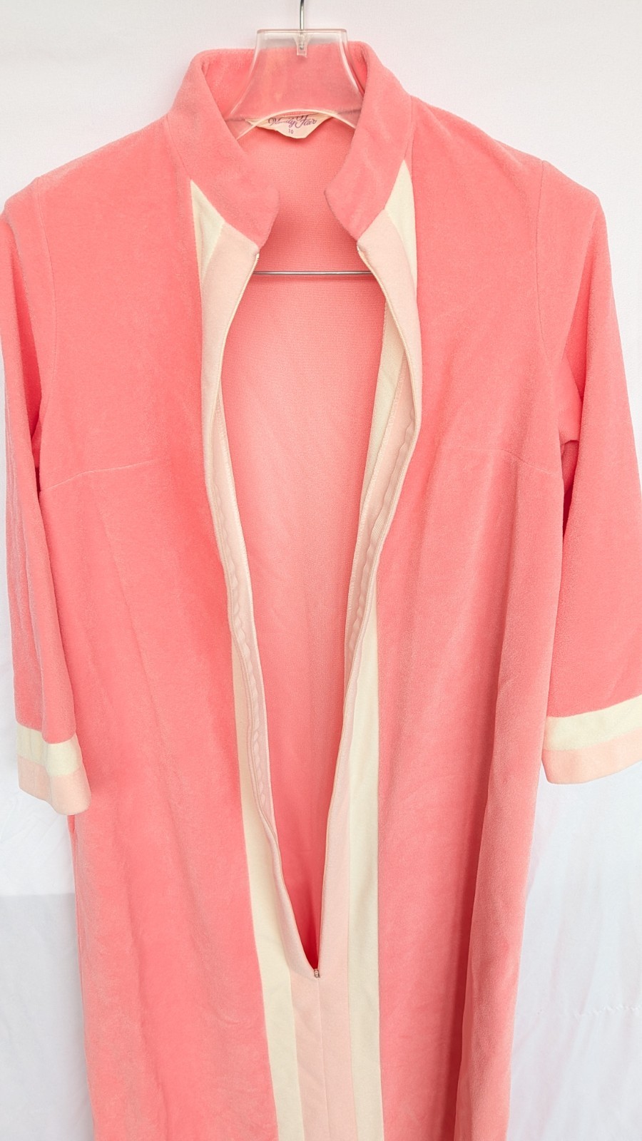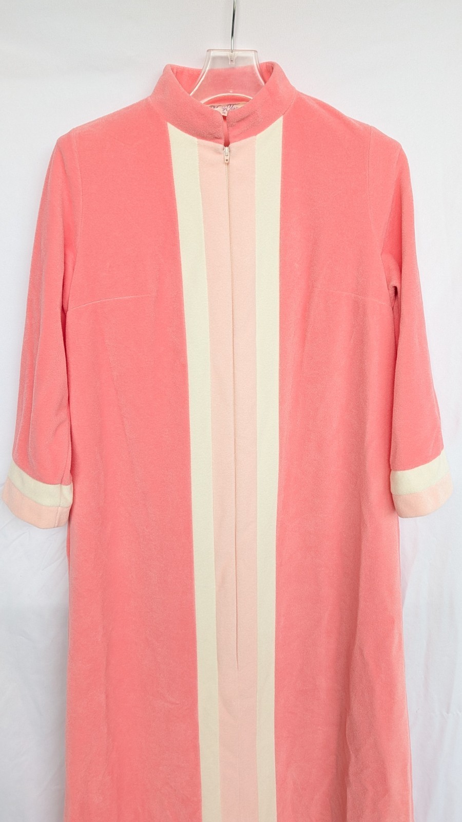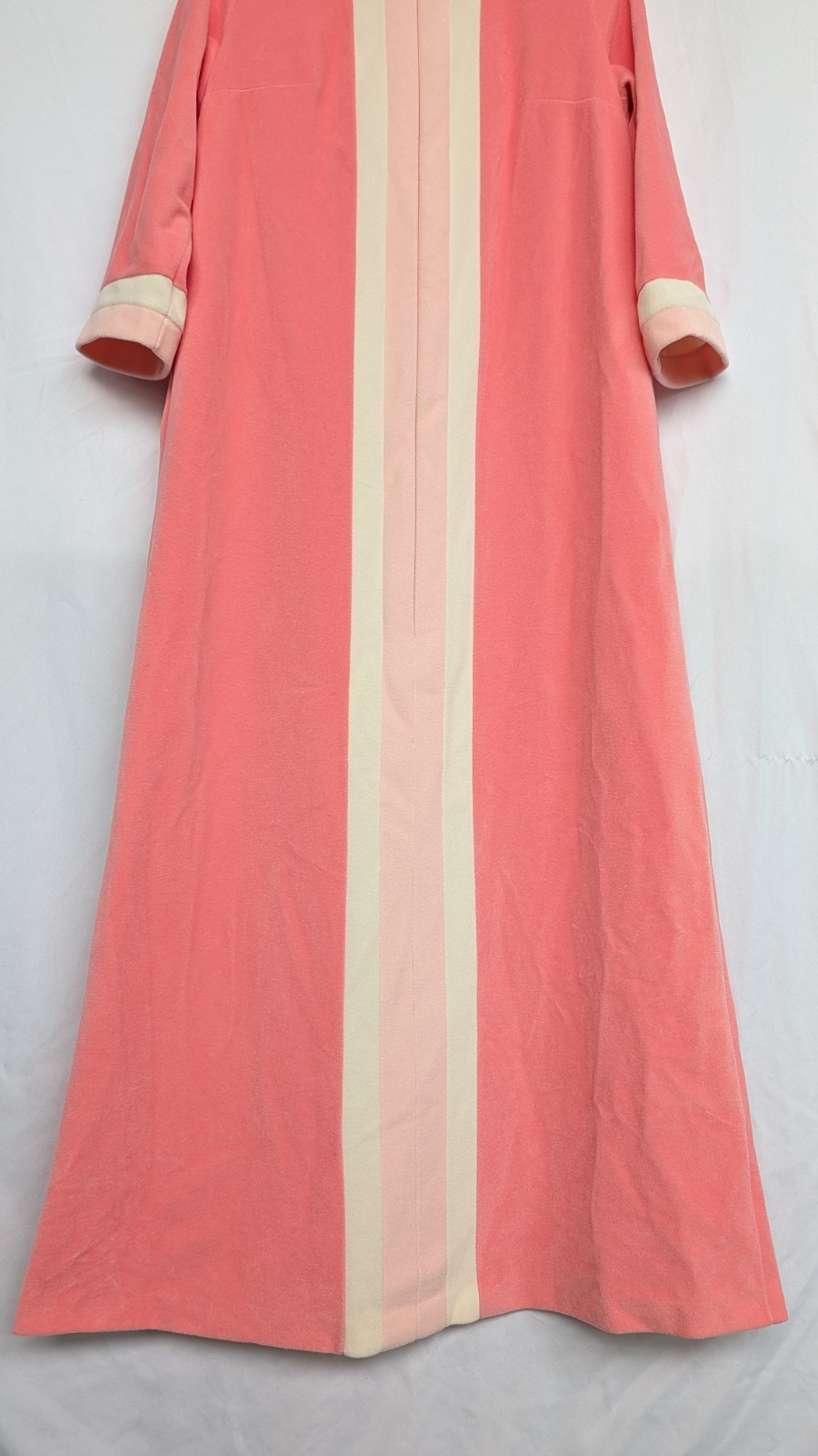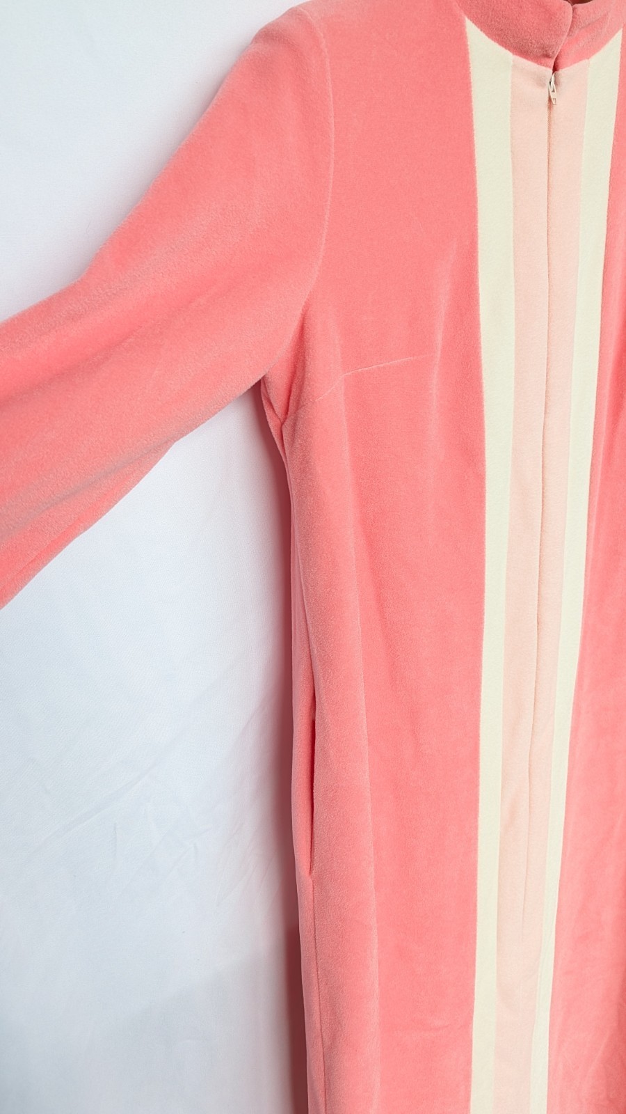Vintage Vanity Fair 1970s House Coat Dress Size 13 Baby Pink Mod Stripes