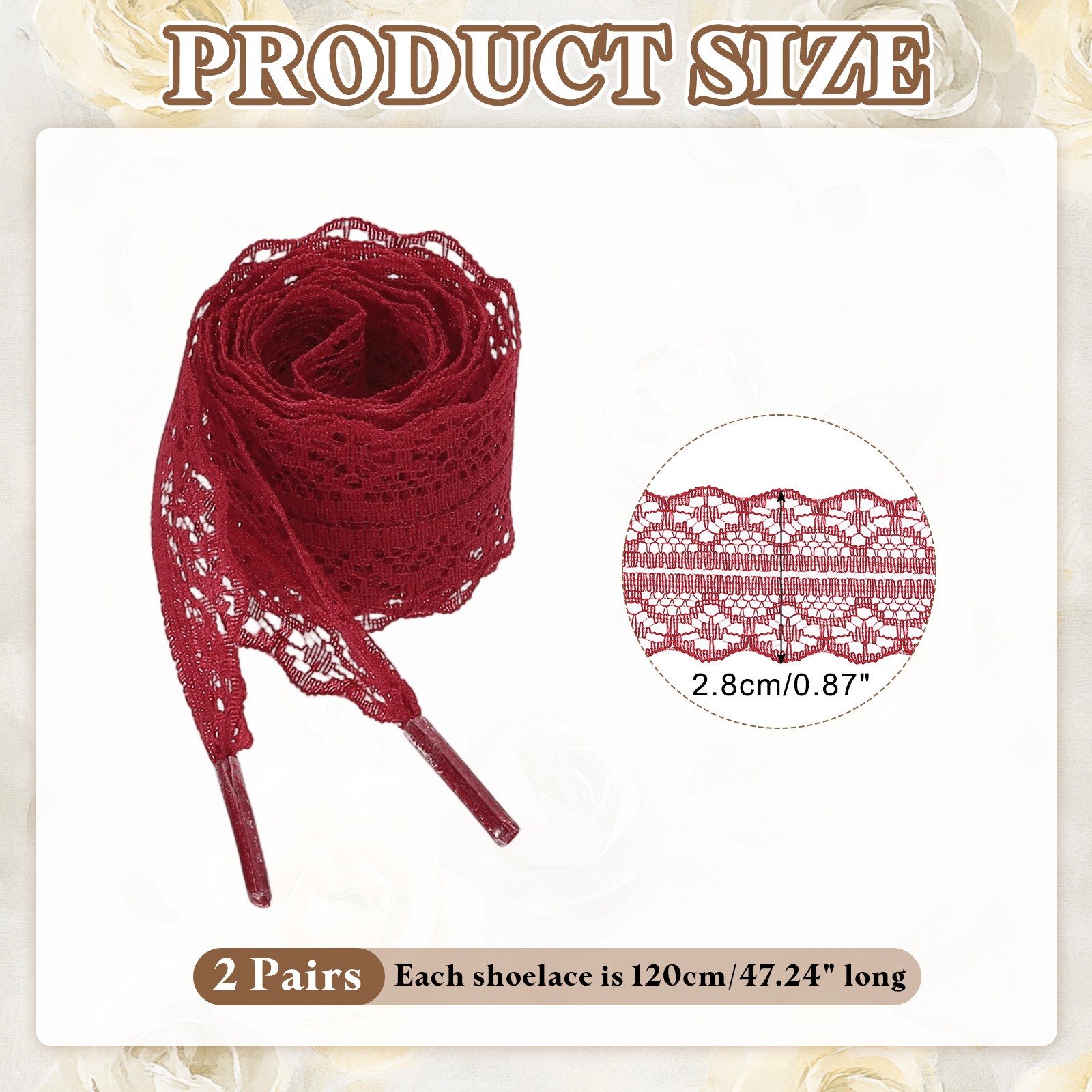 2Pairs Flat Laces Shoelaces, 2.2CM Wide 120CM Length Lacy Shoe Laces, Wine Red