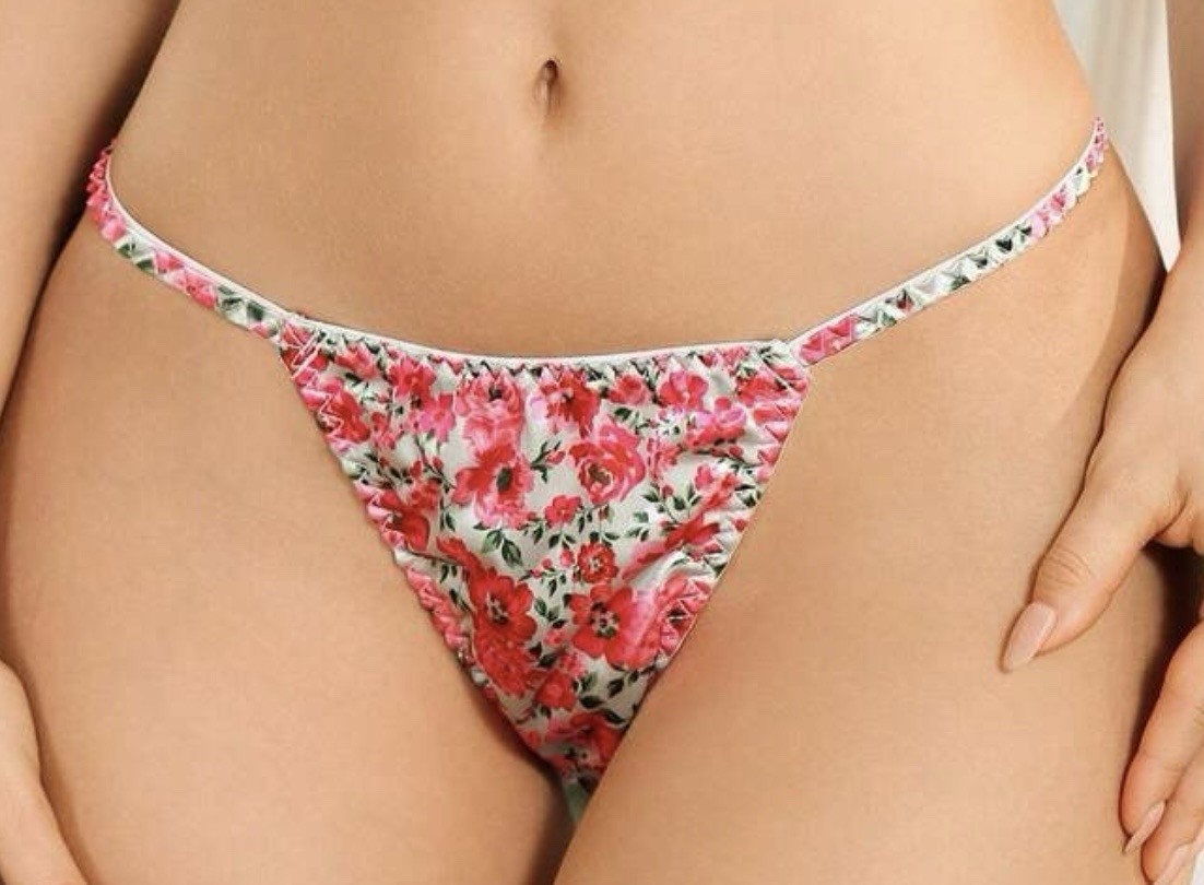 как выглядит VTG 90 s Style Satin Polyester String Bikini Multi-Floral Panties XL NEW фото